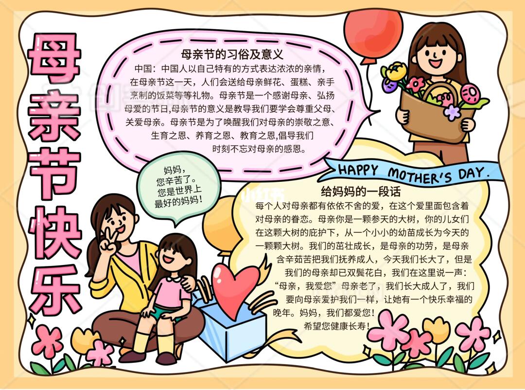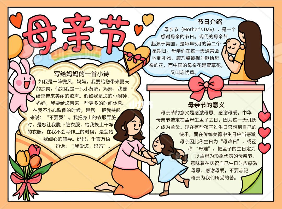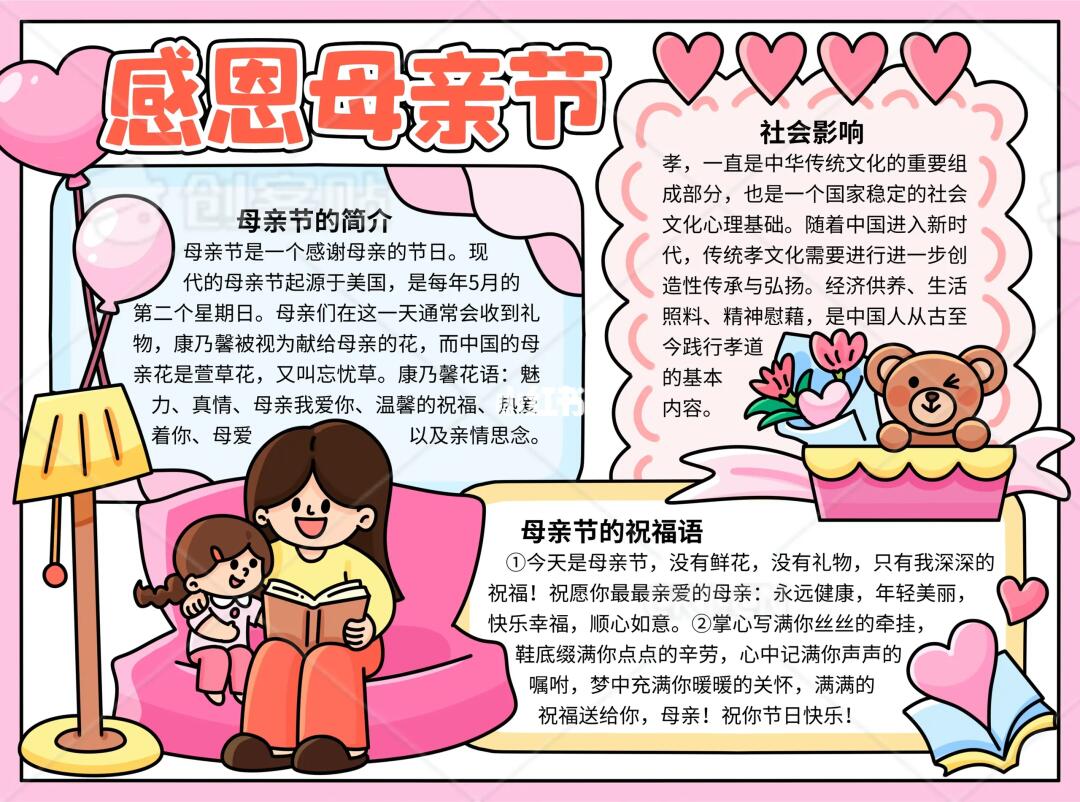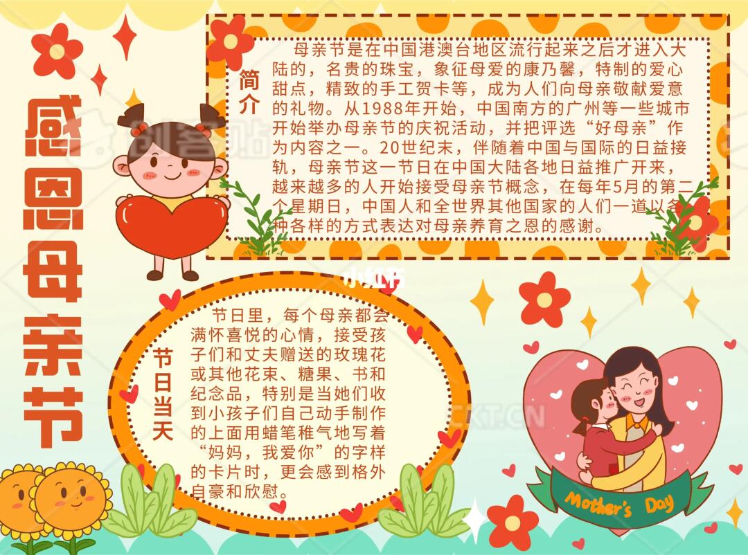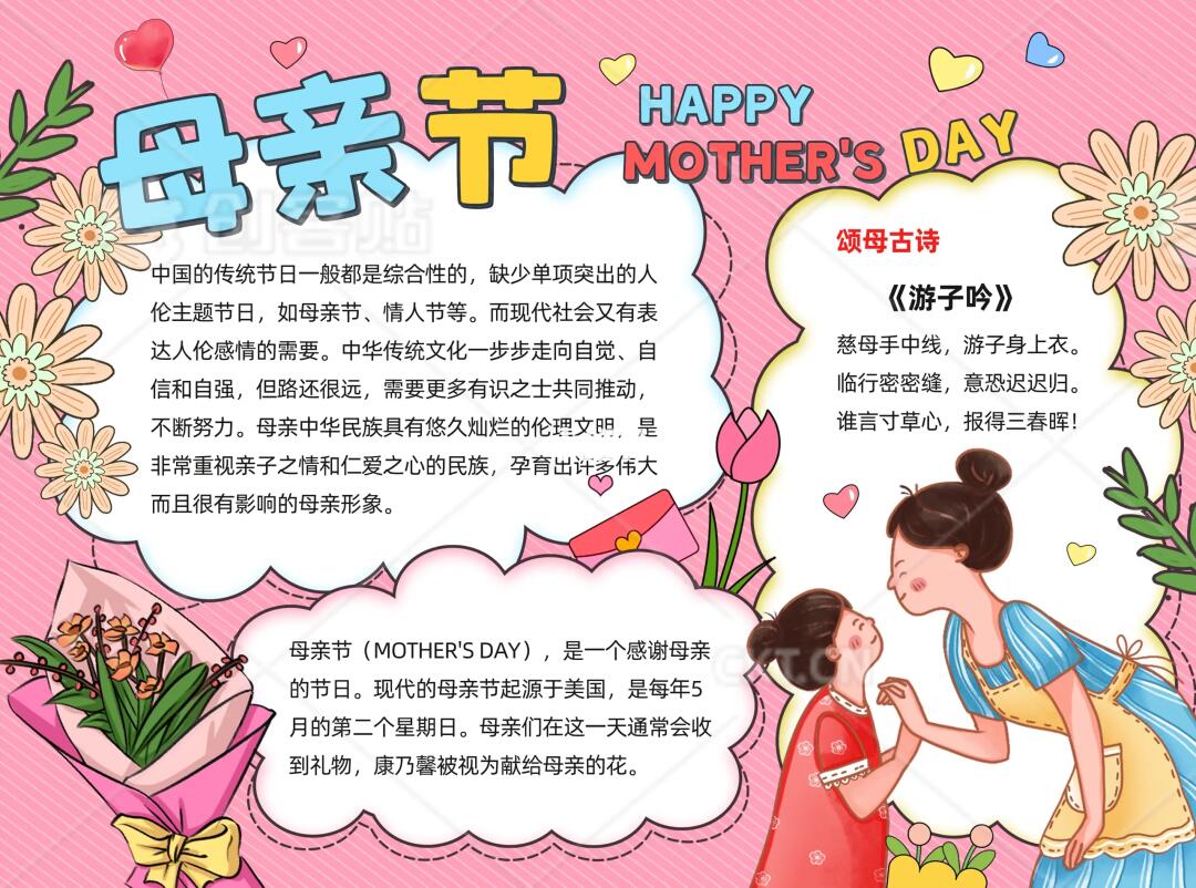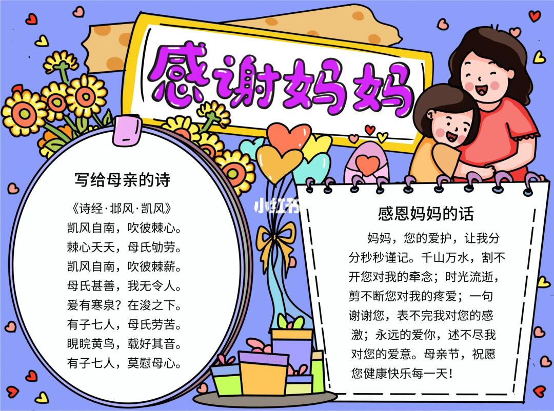 👩🏻🦰“母亲节”系列主题手抄报模版 🎨标题、元素、图片、文案素材适用于主题画、手抄报、黑板报、手账作业,及相关的美术课程。 📚模版图片来源于
