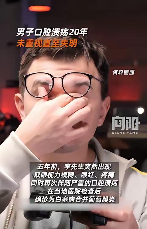 “悲剧还是发生了!”陕西,一男子口腔溃疡反复20年,他以为是上火导致的,所以并未重视,直到5年前,男子双眼突然变得模糊、疼痛,这才去医院检查,发现是自身免疫病引起的,之后又因自行停药导致右眼失明! 别吓唬我,我就是经常口腔溃疡 口腔扁平苔癣,我得的就是这个,一点辣的都吃不了 不舒服的时候赶紧去医院看看,不至于拖到现在真么严重!