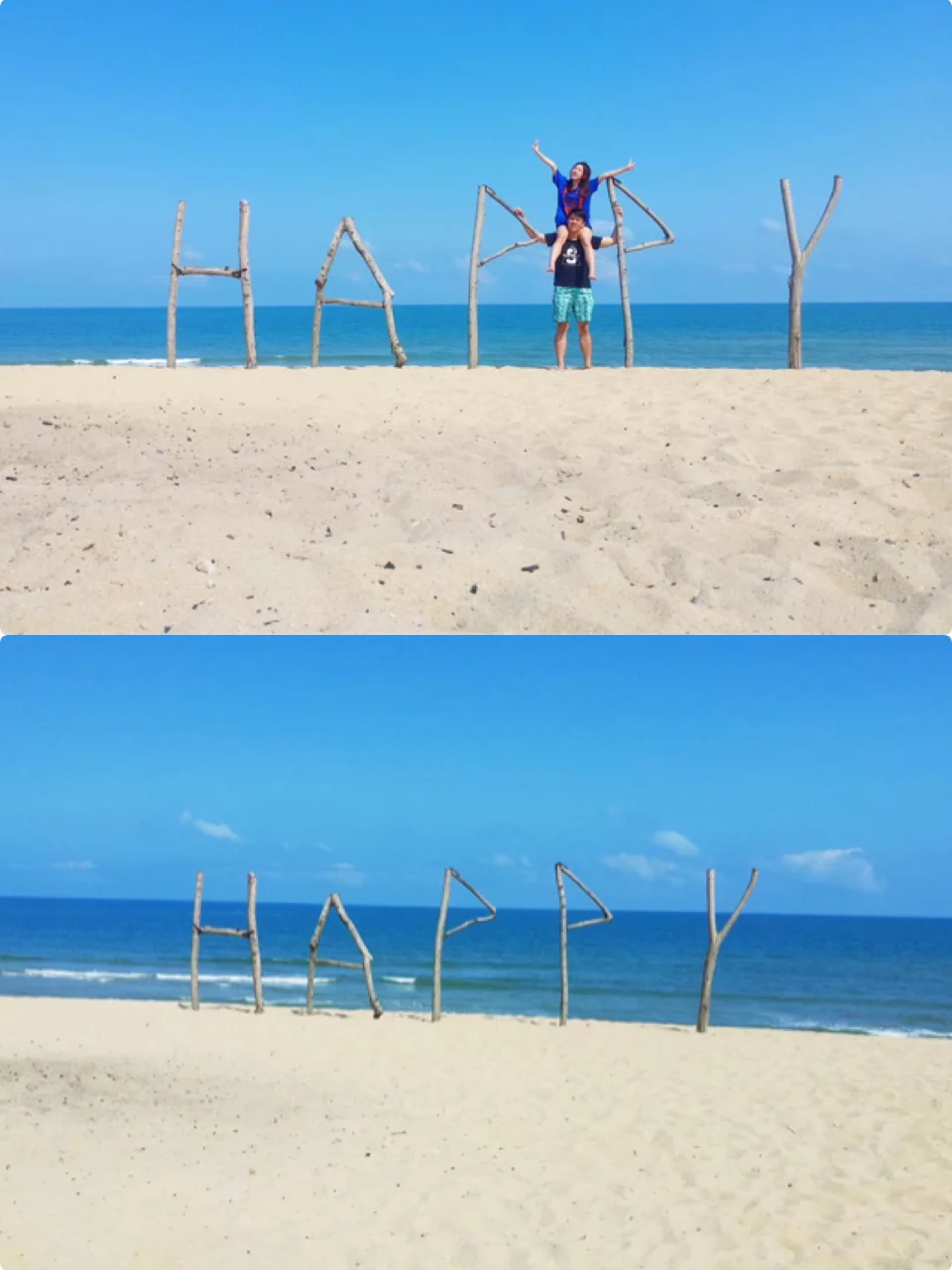 这里的水比大东海和三亚湾都要蓝很多,很干净,沙也细,景色一级棒‼️也有小亭子可以拍照。重点是他们还有个木头“HAPPY”,很多人都以为我去了蜈支洲岛,还说为啥没人!这逼装得绝对满分💯