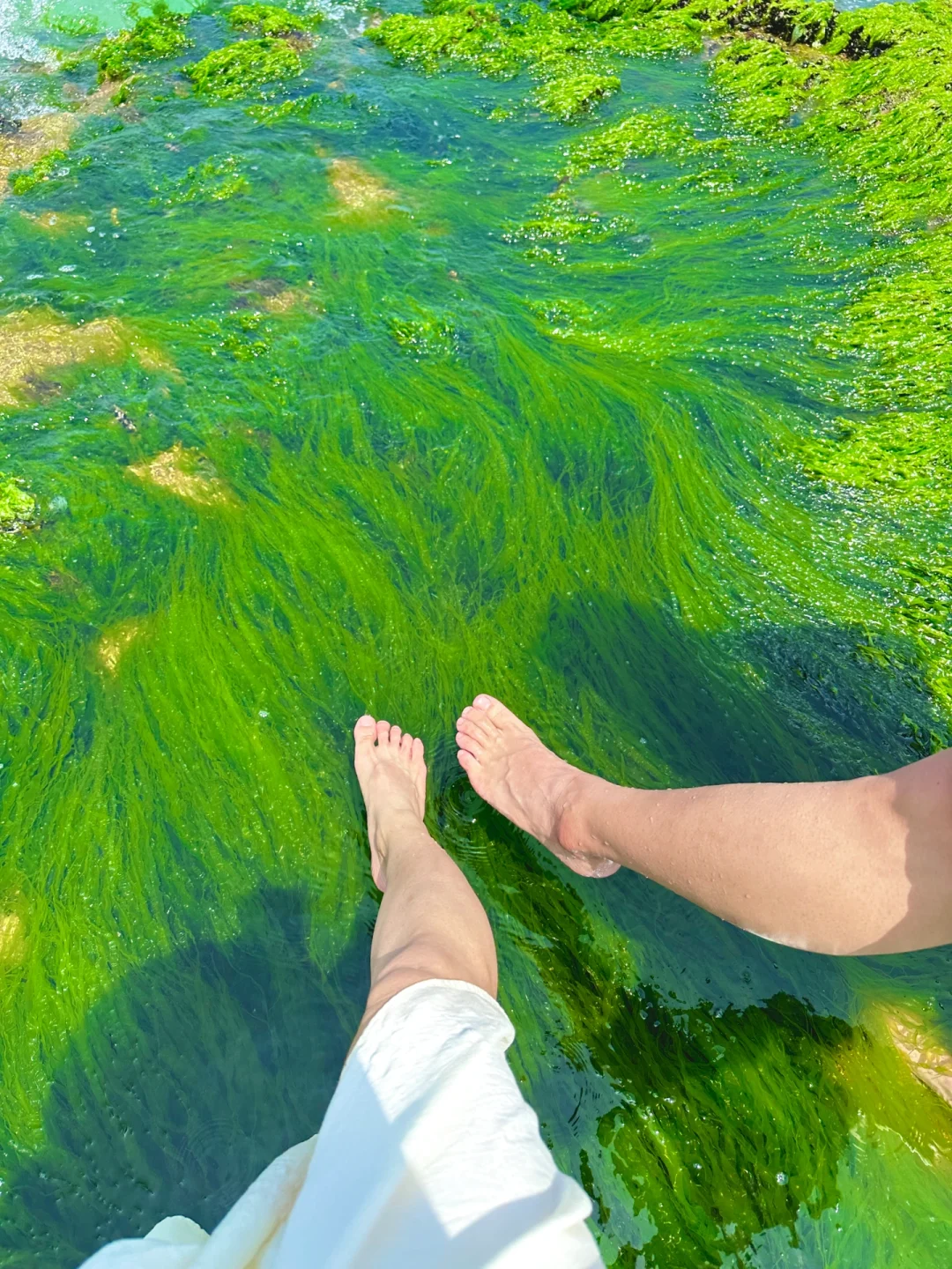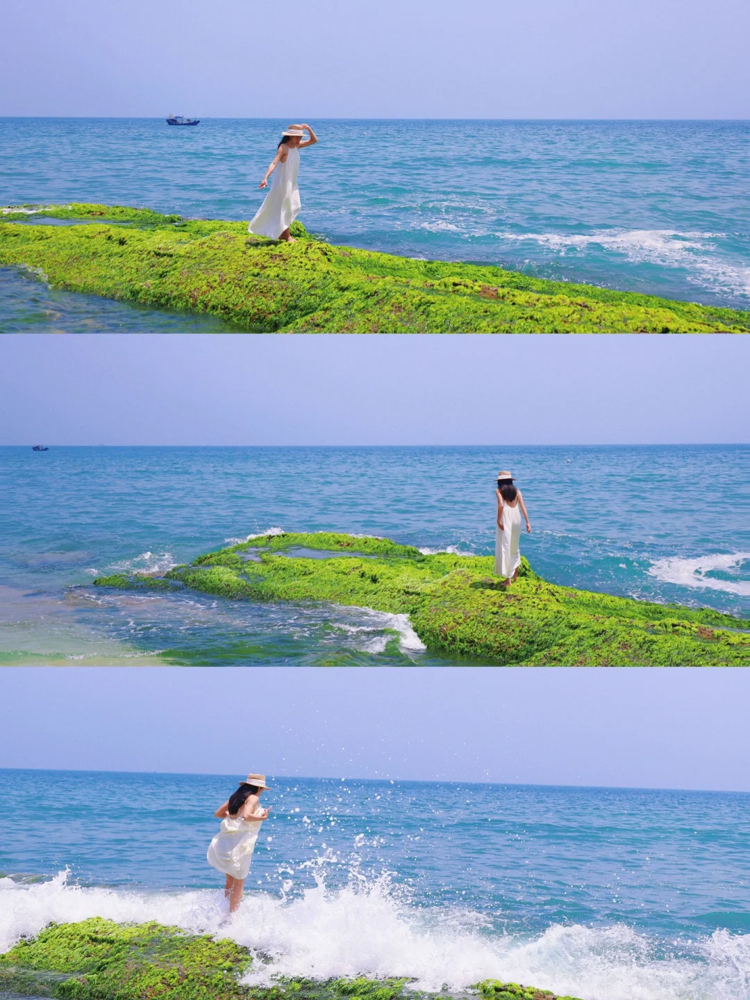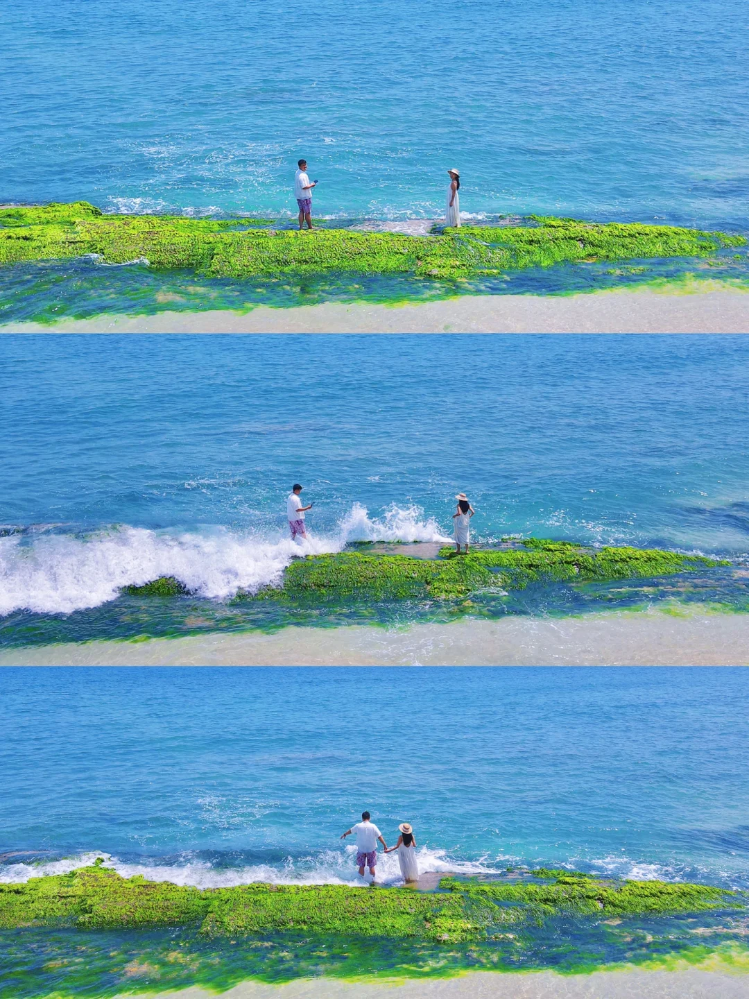 今天天气真的太好了! 当然要去海边玩水呀! 和男友在海边 无意间发现这一抹治愈绿💚 真的太好看了!! - 你们猜猜这是广东惠州哪里[萌萌哒R][萌萌哒R] -