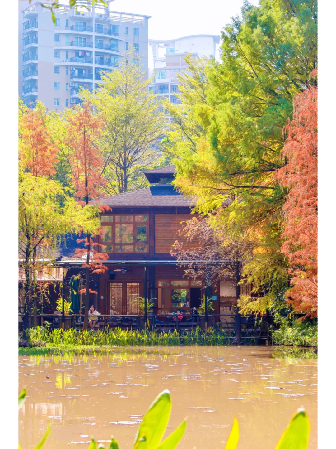 3⃣️园内有一个湖边的小木屋咖啡馆「湾区书屋」,环境很棒(旁边的落羽杉也红了),很适合闺蜜、情侣来这里下午茶☕️