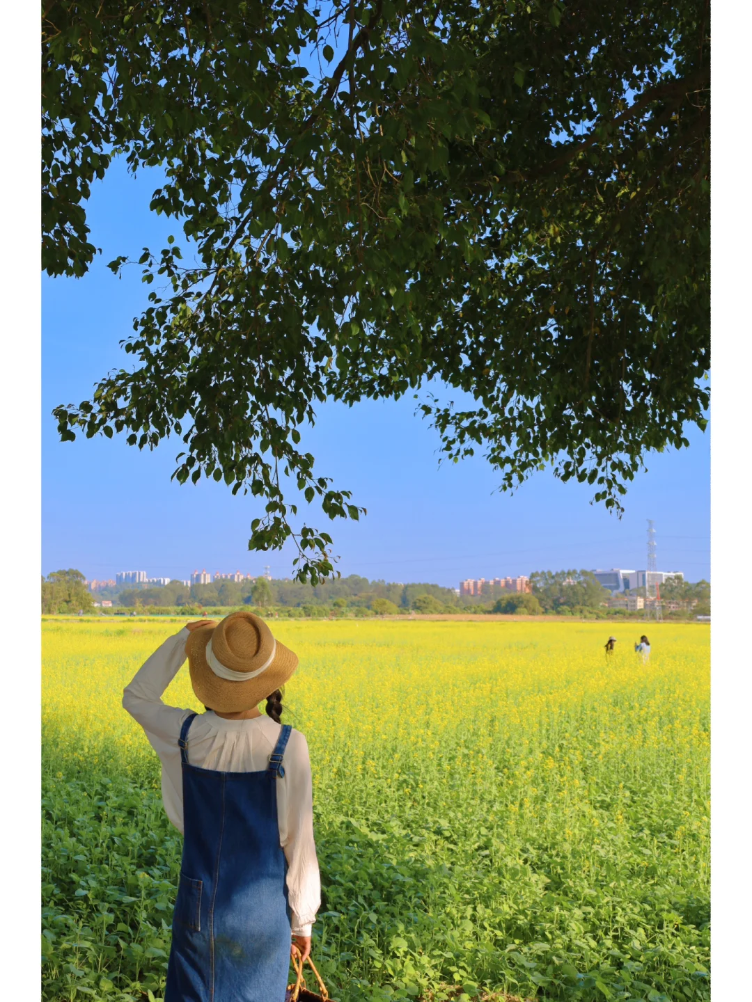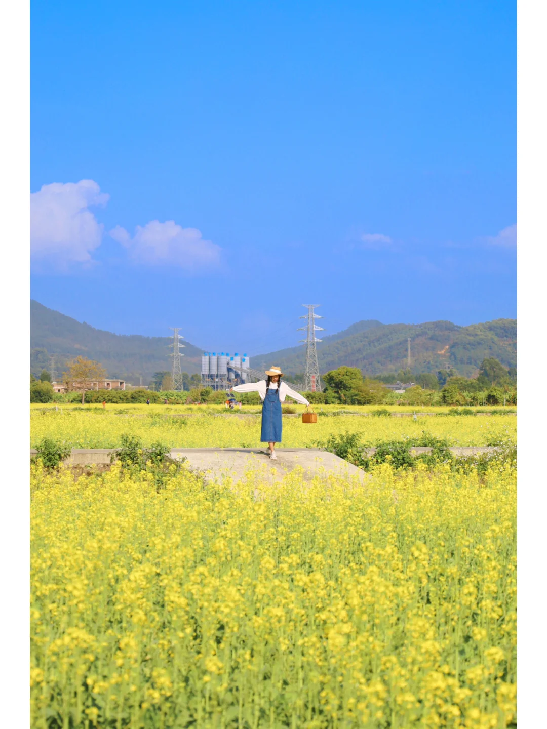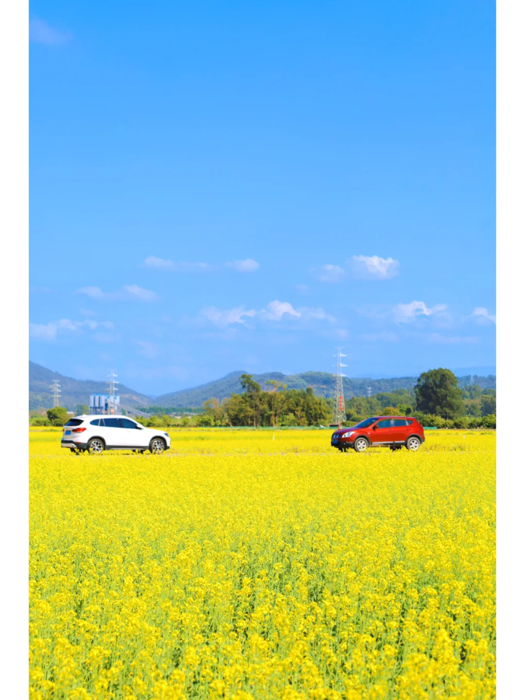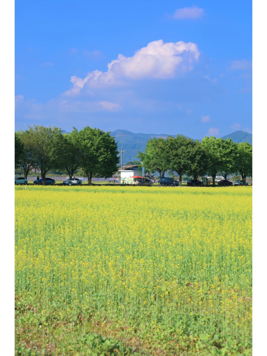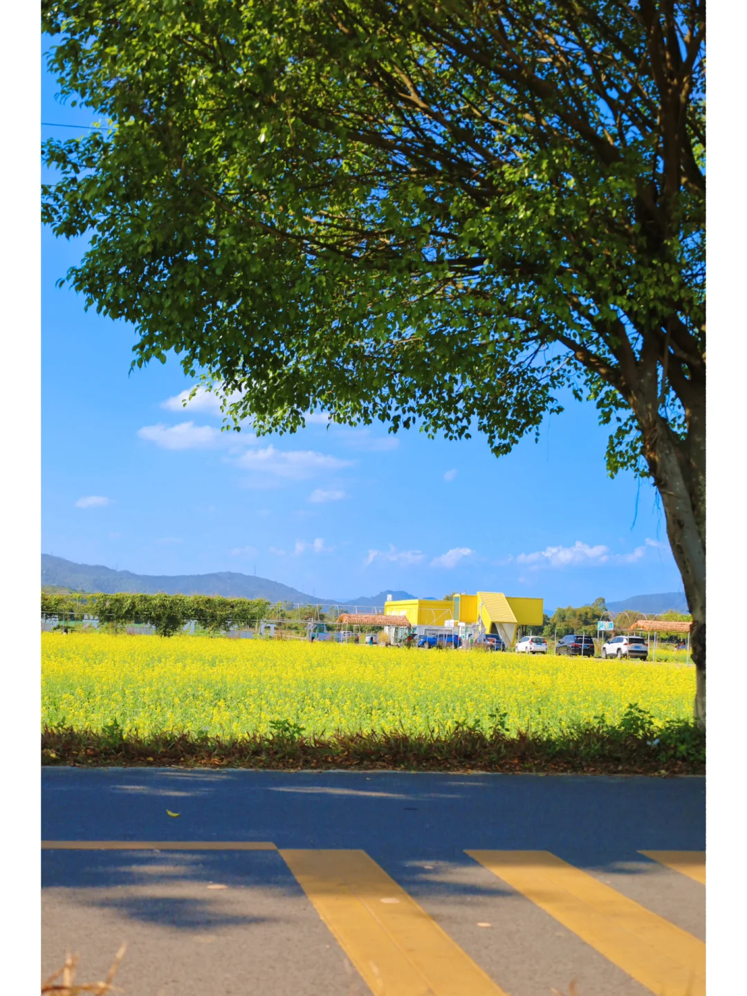 随后便是一片又一片金灿灿的油菜花田映入眼帘
