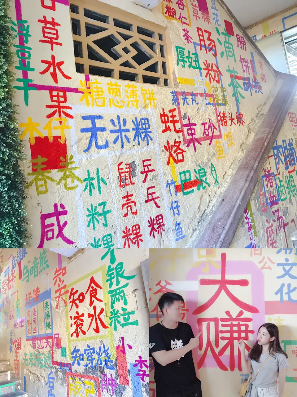 这里有一面写满很多潮汕美食名字的彩色墙,很适合拍照哦~