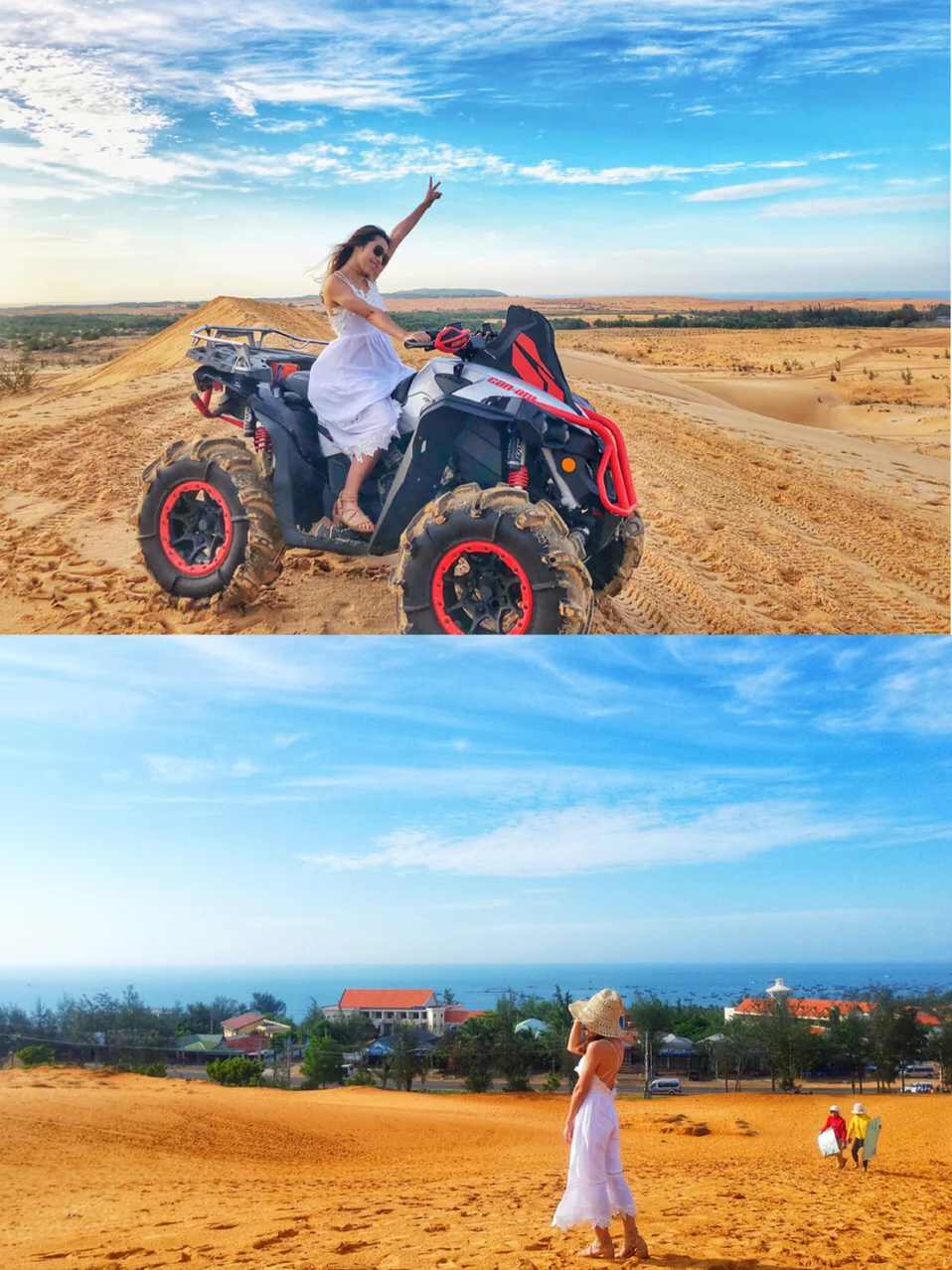 🏜白沙丘:看日出的地方,离市区大概30分钟车程。沙丘很大人又少,绝对是拍照圣地!可以花60k vnd坐沙地摩托,因为上去白沙丘的时间很久,顺便体验一下沙地摩托的刺激