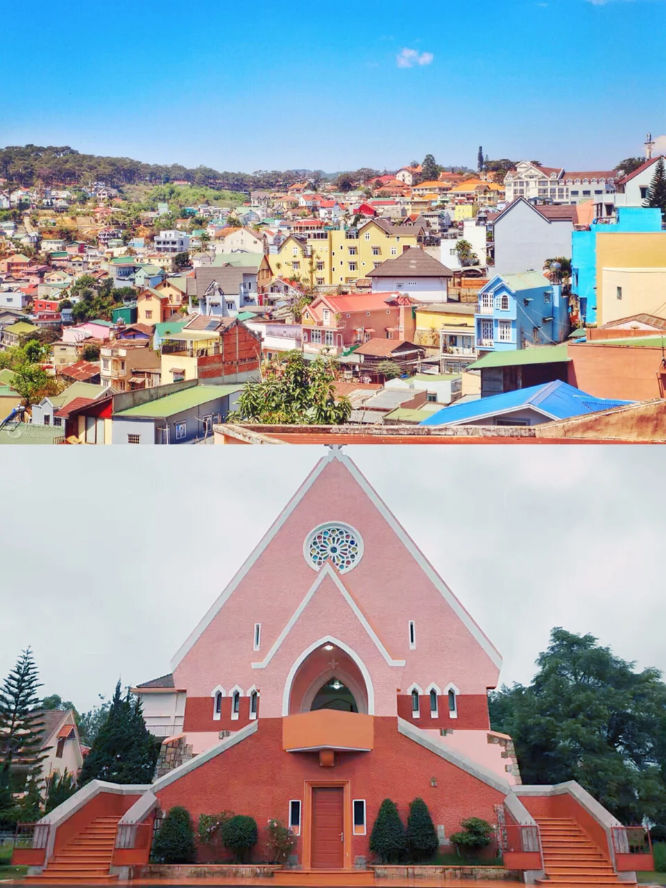 从高处望去,很多彩色小屋子,十分有特色。走进每一条小巷子,都会别样的惊喜哦。大叻海拔有1500米,平均气温17度,大家记得备好外套长裤