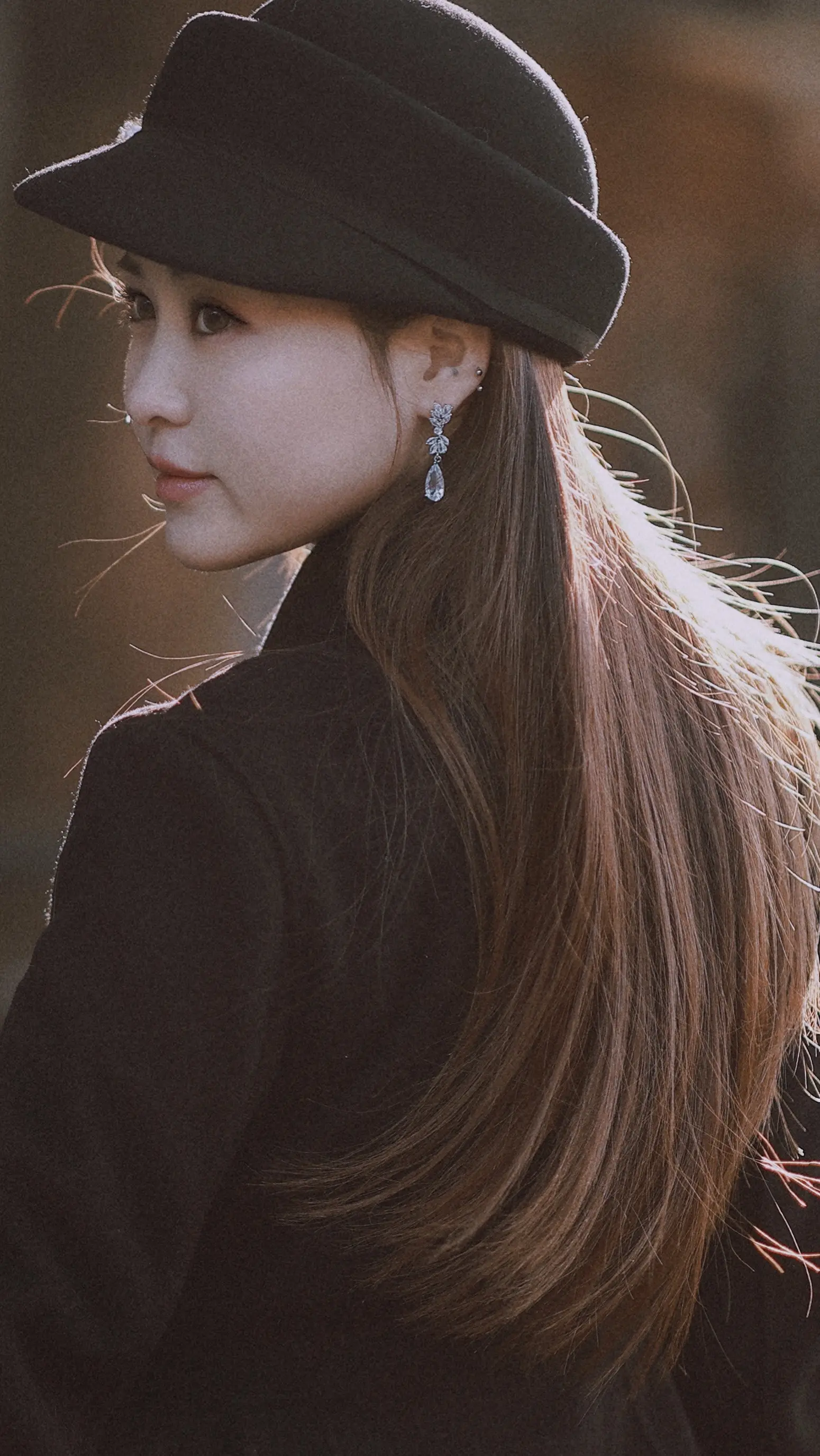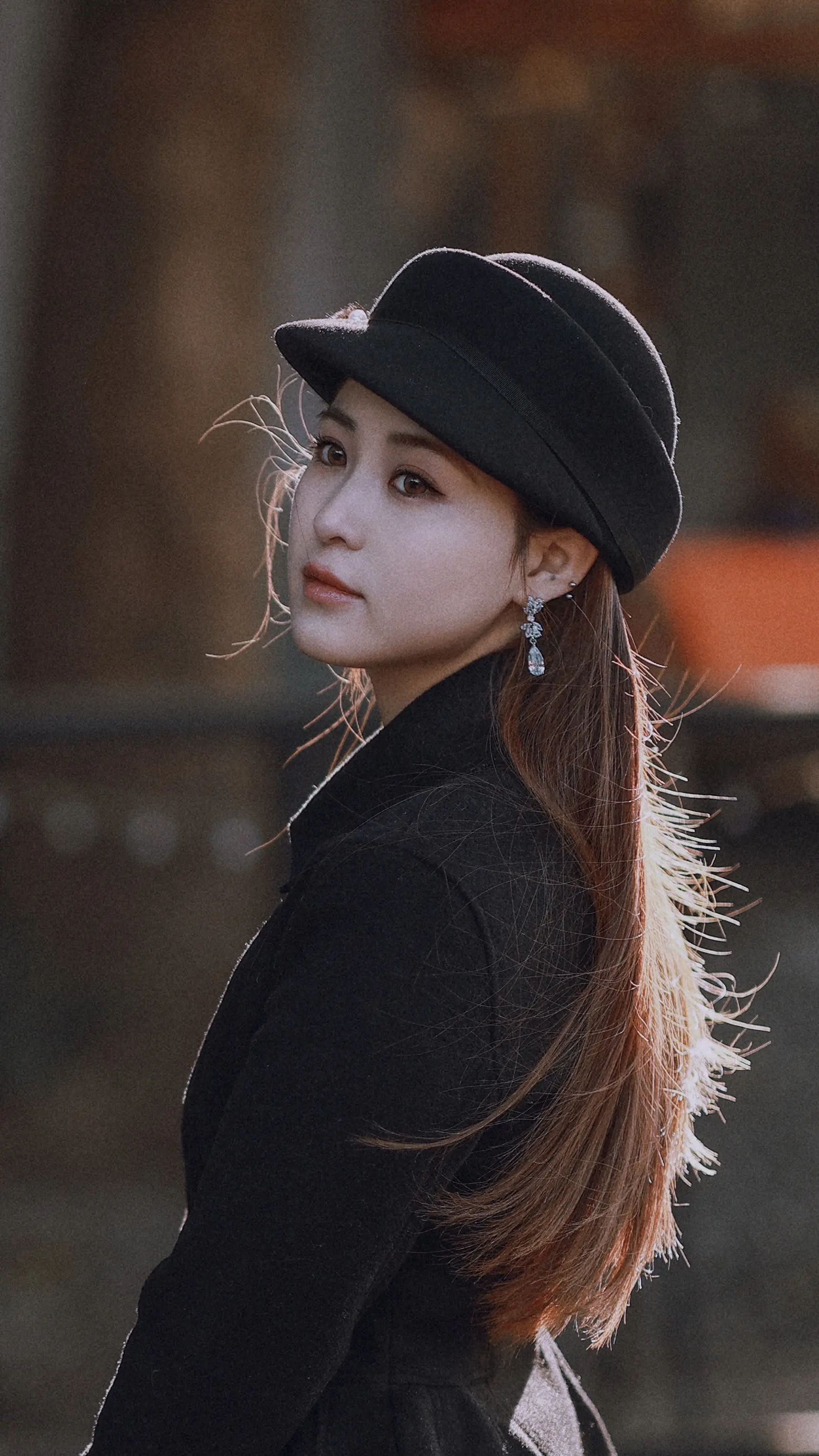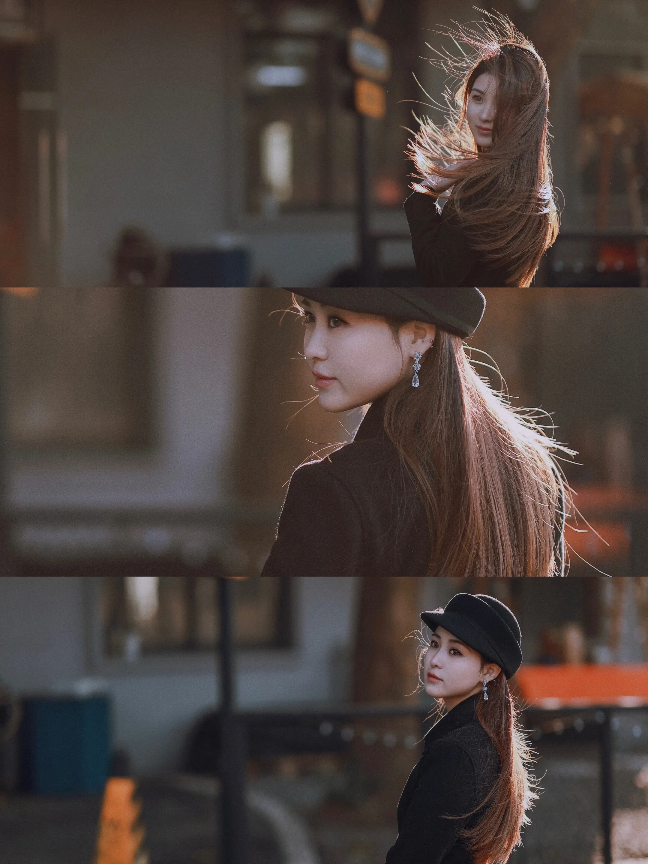 冬日暖阳港风复古女生拍照姿势人像摄影发丝发光