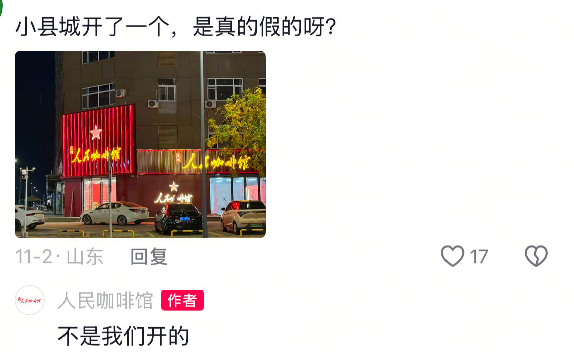 目前这家最大的“人民咖啡馆”已经在全国开了18家,还有很多模仿的店,模仿的店里面更是有一些打着人民的旗号怼着人民的店家……