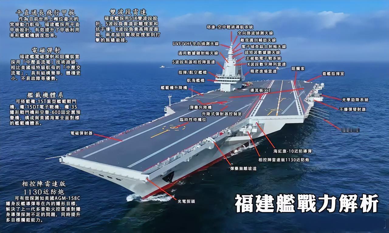 港媒解析福建舰战力,船上各装备位置、设备功能一目了然 福建舰正式服役的消息传来,香港大公文汇网也发布视频,解析了福建舰的整体战力。 报道对福建舰上装备的电子设备、舰载机体系以及电磁弹射系统进行详细解读,并表示福建舰全面对标美军的舰载机体系。 这篇报道可见,福建舰的服役不仅是中国海军的一次重要升级,也标志着中国在航空母舰技术上的一个飞跃。 尤其是福建舰的电磁弹射系统,这一技术的引入,意味着中国海军的舰载机起降能力达到了一个新的高度。 这种电磁弹射与传统的蒸汽弹射方式不同,不仅提升了舰载机的起降效率,还能支持更多类型的战机起飞,这对于战斗力的提升是极为关键的。 但要说到这艘福建舰的真正意义,不只是单纯的技术突破。它是中国海军力的象征,是对美军航母技术的正面挑战。 福建舰的装备配置和功能设计,显然是经过深思熟虑的,无论是舰载机的部署,还是舰上各项设备的布局,福建舰都在朝着更高效、更精密的方向发展。 这不仅体现了中国的技术进步,也展示了中国海军在未来战争中更强的远程打击能力和持续作战能力。 不过,尽管福建舰的技术亮点不容忽视,我们也不得不看到其中的挑战和潜在问题。 毕竟,航母是一项庞大且复杂的系统工程,舰载机的数量和质量固然重要,但如何保持舰载机的持续作战能力、如何确保舰员的操作效率、如何应对复杂多变的海战环境,都是考验福建舰真正战力的关键因素。 福舰的服役是一个强有力的开始,但是否能够像美军的“尼米兹级”那样在全球范围内发挥威慑力,仍需要时间的检验。 再说到舰载机体系,福建舰的设计对标美军,并不是说仅仅复制了美国的技术,而是在学习和借鉴中做出了适合中国海军需求的优化。 舰载机不仅是航母的“拳头”,还是关键的战略资产,而福建舰上的电磁弹射和舰载机系统,将使得它可以更快速地响应战场需求,提升作战效能。 每一架起飞的舰载机,都意味着中国海军的强大存在,但如何精确配合、协同作战,才是决定战力的关键。 此外,福建舰能否在长期的服役中保持技术领先、具备持续作战能力,也取决于后续的维护与技术更新。 无论是舰载机、雷达系统,还是电磁弹射等装备,都有可能在未来面临新的技术挑战。 在全球军事竞赛愈加激烈的今天,任何一项技术的领先,都可能被迅速超越,因此。 福建舰的战力不仅仅体现在现阶段的强大,更在于未来几年中如何应对技术更新的挑战,并确保海军作战体系的整体提升。 更重要的是,福建舰的服役,反映了中国在海洋战略上的自信心提升,这艘航母不仅仅是为了海上防卫,更是为了在复杂的国际环境中为中国提供更大的战略影响力。 在全球海洋战略竞争日益白热化的今天,中国拥有一艘先进的航母,无疑为其在国际海洋事务中的话语权增加了砝码。 然而,我们也要认识到,航母的强大并不是万能的,它更需要与其他战斗平台形成合力,才能发挥最大作用。 比如,与驱逐舰、潜艇的协同作战,以及对敌方的情报侦察、电子对抗能力等 ,这些都不是福建舰一艘航母可以独立解决的,必须依赖整个海军作战体系的完善与整合。 总的来说,福建舰的服役标志着中国海军技术和战略能力的一次大跃进,它不仅仅代表着中国在航母领域的技术突破,更是中国海军走向全球的重要一步。 未来,福建舰如何在实际战斗中发挥作用,仍然需要时间和实践来检验,至于它是否能够真正打破美军的航母优势。 虽然现在还很难下结论,但不可否认的是,它已经在全球海军力量格局中投下了沉重的一枚“棋子”。 各位读者你们怎么看?欢迎在评论区讨论。福建舰 福建号航母舰