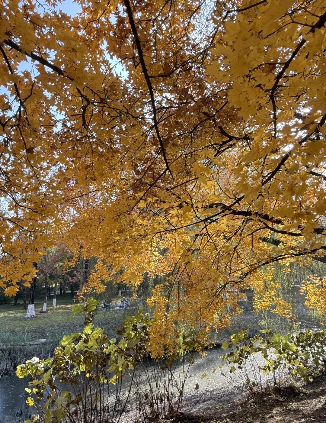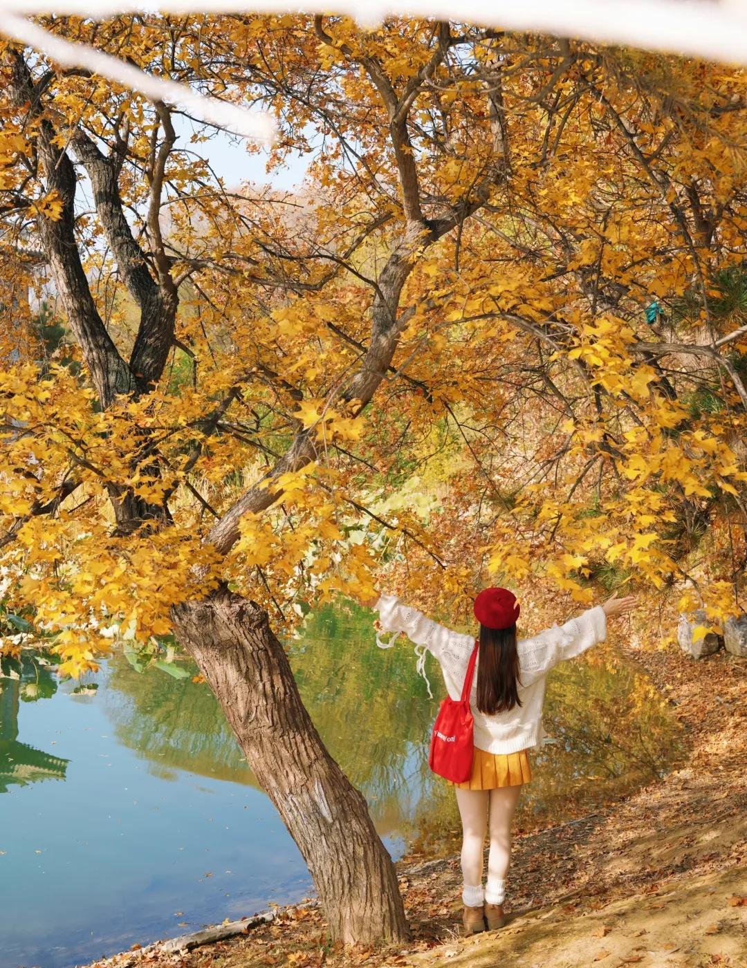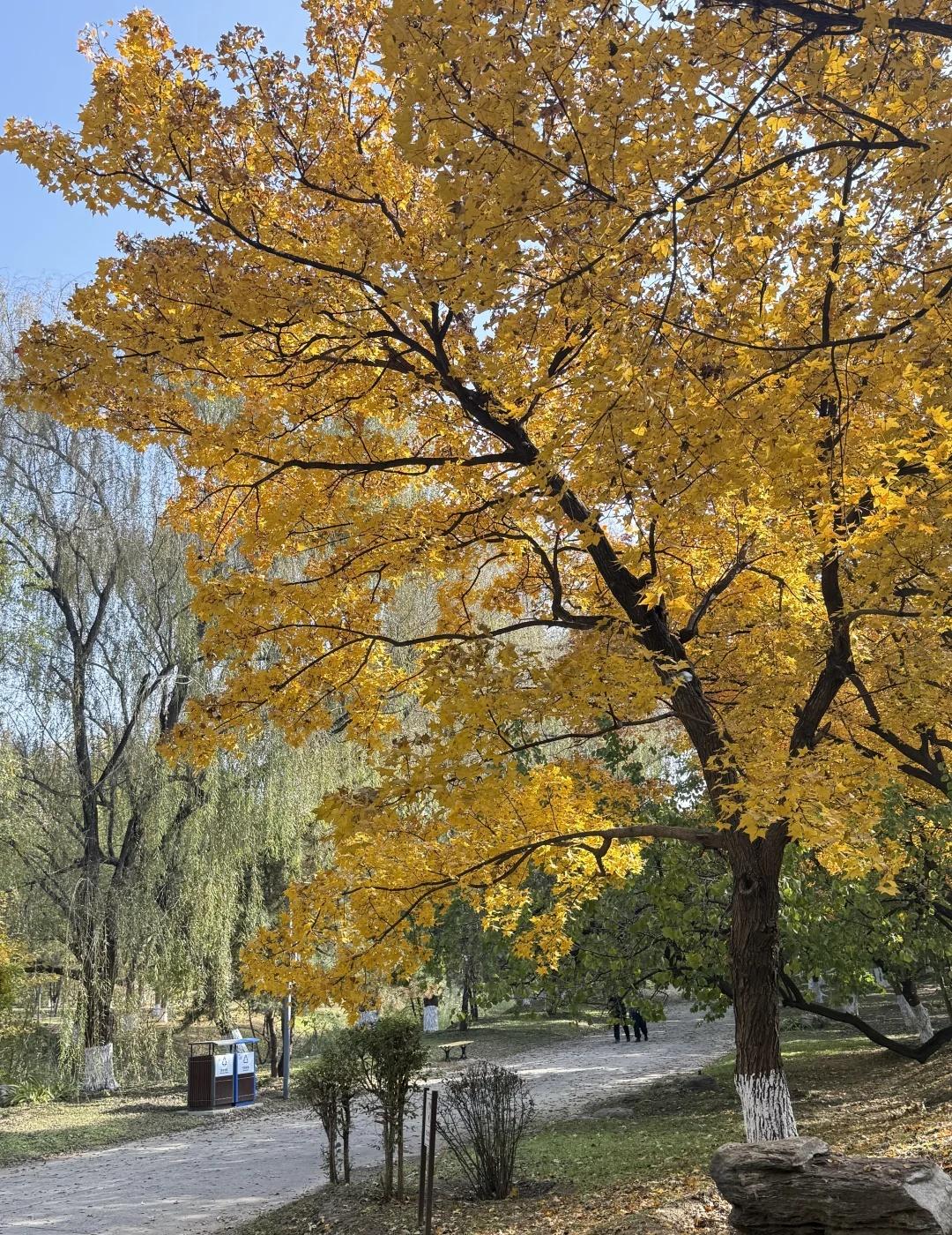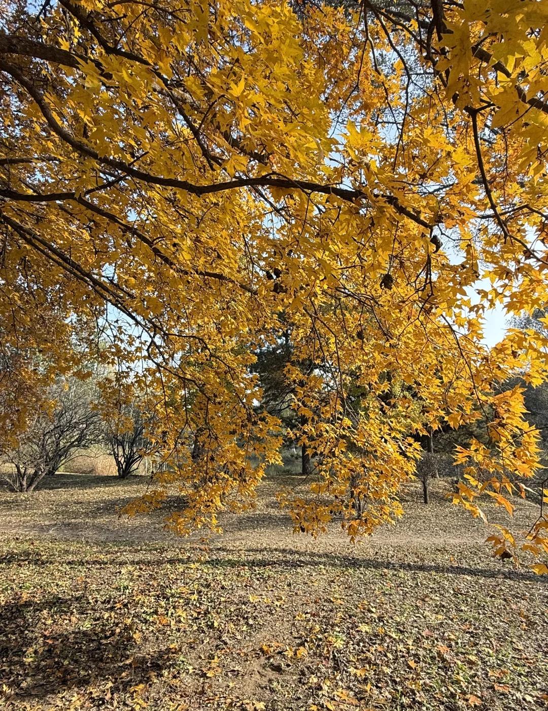 11.1奥森北园简直五步就一神树!附位置+路线 别去挤龙潭湖公园啦 奥森北园这里小众无人 而且几乎每隔几米就一颗巨型神树 枫叶金灿灿正是巅峰期 有几颗还邻水仿佛一副油画! 图9-16都是今日实拍live!原图直出! 【神树位置和路线】 直接定位奥森北园北17门进入 路线从1-4挨个走即可 1.楼兰姑娘附近(图1图9图10图11) 17门进门后往左边走5分钟左右 会看到一个巨大楼兰姑娘雕像 楼兰姑娘东南侧岔路口会看到一片金灿灿 这里算是最热门最出片的位置 因为在路边人也相对较多 枫树颜色金灿灿旁边还有条河 整个画面好像一幅油画 2.小坡附近的枫树 经过第一个点位向前走然后右转 会看到一片小山坡 山坡脚下有一颗超大的神树(图8、图12) 山坡上是一大片灿烂的黄色枫树(图4) 3.无人的湖边枫叶秘境(图3、图6、图14) 这个地方比较难找 上坡之后左拐会看到一大片草坪 草坪右侧被竹子墙拦住一半 竹子后面就是湖边的枫叶秘境 这里面湖水和建筑都特别美 枫叶有点枯了落叶很多 但还是很出片 4.大草坪左边4颗巨型枫树(图2图5图7) 这四颗比前面点位1的要更金红一点 有一颗枫叶低垂到人的腰部 我去的时候基本没人 旁边还有大雁和天鹅随意散步 这里真的好chill 浪漫生活记录者 北京秋天 北京拍照北平之秋北京旅游北京旅行攻略北京秋天旅游攻咯 奥森秋天 奥林匹克森林公园奥森枫树