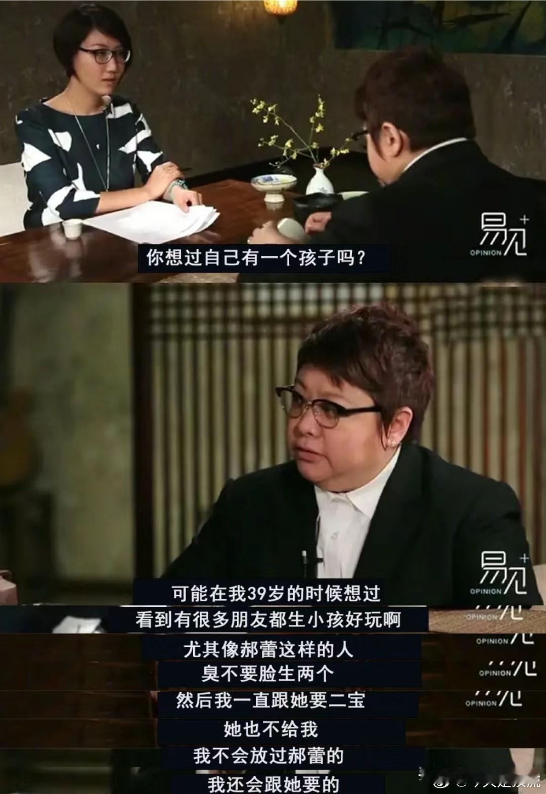 韩红没想到 郝蕾也没想到 韩红可能是郝蕾唯一忌惮的人了 不是说韩红比她演技好 也不是韩红比她厉害,而是韩红一来就直击命门问她要孩子,这哪是要孩子,是要她的命,对她两个孩子虎视眈眈,拒绝都没用,她还不死心一直在伺机而动。 韩红还上节目放话说,我不会放过郝蕾的,我还会跟她要的。 所以说郝蕾敢说这个说那个,绝对不敢说韩红。