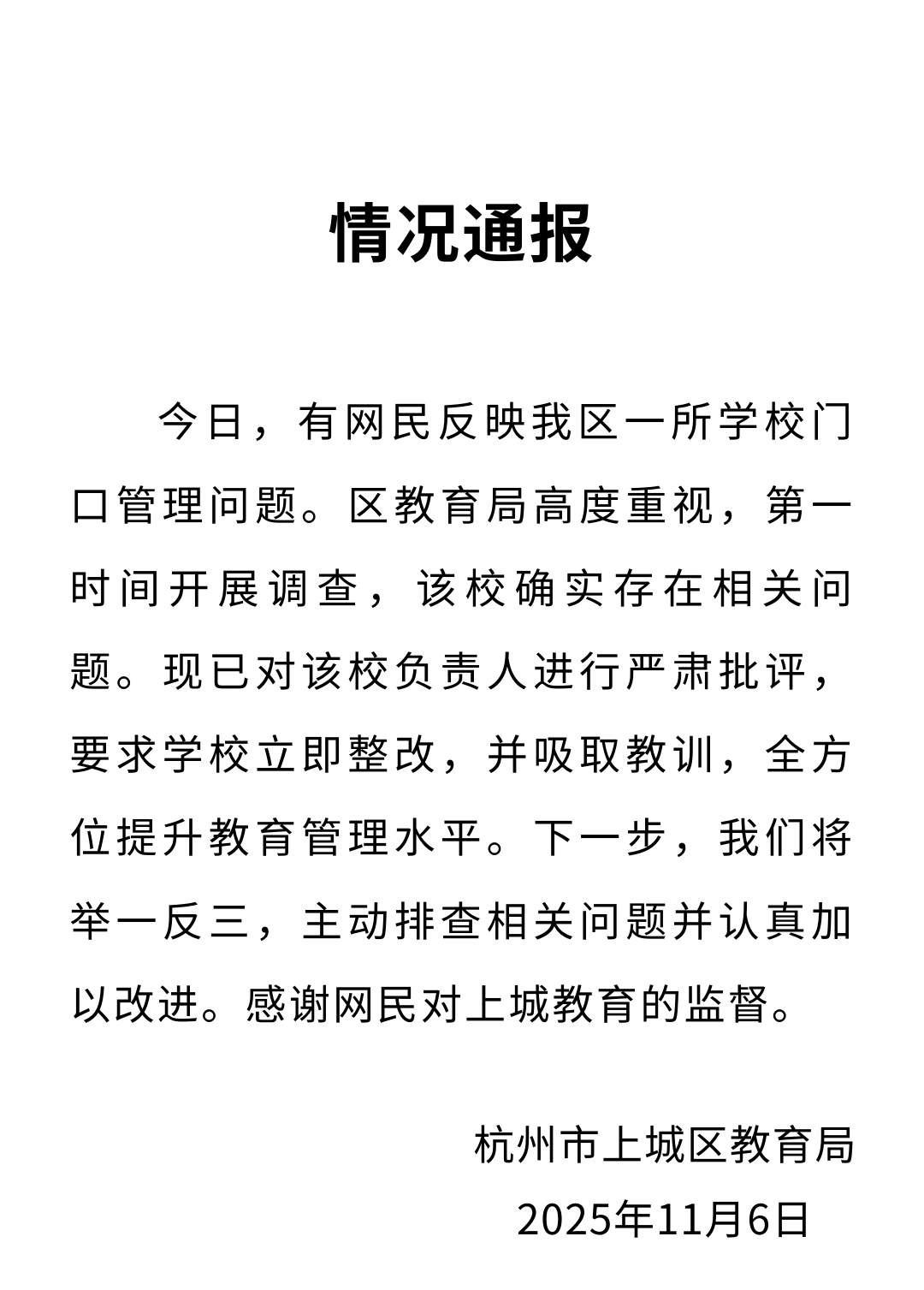 你把老师当园丁,老师把你当家丁。没想到发达地区会发生如此事情!!“小学生校门口列队敬礼迎车辆入校”官方通报来了! 2025年11月6日,网友发布杭州上城区笕桥小学门口的短视频,画面中佩戴“值周”绶带的学生列队两侧,每当教师车辆驶入便整齐敬礼并高喊“老师早”,50秒内重复该动作10次,而多数车辆车窗紧闭、径直入校,仅少数驾乘人员轻微回应,部分学生在寒风中冻红双手的场景引发公众质疑 。 当学生在寒风中重复敬礼,换来的却是紧闭的车窗与漠视。真正的尊师重道,应是师生间的双向奔赴。