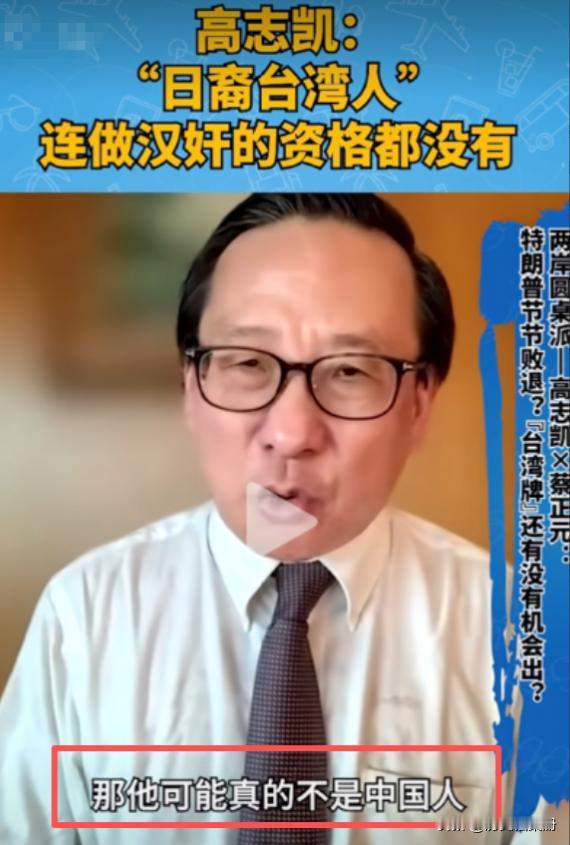 “日裔台湾人,连做汉奸的资格都没有!” 高志凯教授又提出了“日裔台湾人”这样一个新概念,这个说法估计又要让很多台湾人“破防”了。 《马关条约》的签订让台湾沦为日本的殖民地,在这种情况下台湾本土人民是最低等的人,日本人为了同化台湾,逼迫台湾人民改姓,说日本话,学习日本的习俗。 为了强化台湾日本化,日本人拼命的打压那些台湾本地人,不愿意改姓说日本话,那就只能做苦力,找不到好工作,同时还要交大量的税,迫于无奈,越来越多的台湾本地人投入日本的怀抱,和日本人成家生子。 直至1945年抗日战争胜利,台湾光复,台湾本地人才能光明正大的去说自己的国语,讲自己的祖宗。 但长时间的洗脑已经让这些人立场混乱,再加上当时的国民党忙着巩固自己的势力,没想过肃清这些人的思想,他们也不知自己是日本人还是台湾人了。 这些不知自己根源出自哪里的人就是“日裔台湾人”,而现在的民进党,鼓吹台湾人是日本人,说着“台日友好”,完全忘记了日本殖民时期对于台湾人的迫害,这种人和“日裔台湾人”有何区别。 “汉奸”是背叛了自己祖国的奸恶小人,民进党这些“日裔台湾人”连自己的祖国是哪里都不知道,连背叛不都知道背弃了哪里,连汉奸都不如。 以上是小编个人看法,如果您也认同,麻烦点赞支持!有更好的见解也欢迎在评论区留言,方便大家一同探讨。