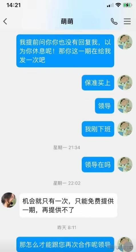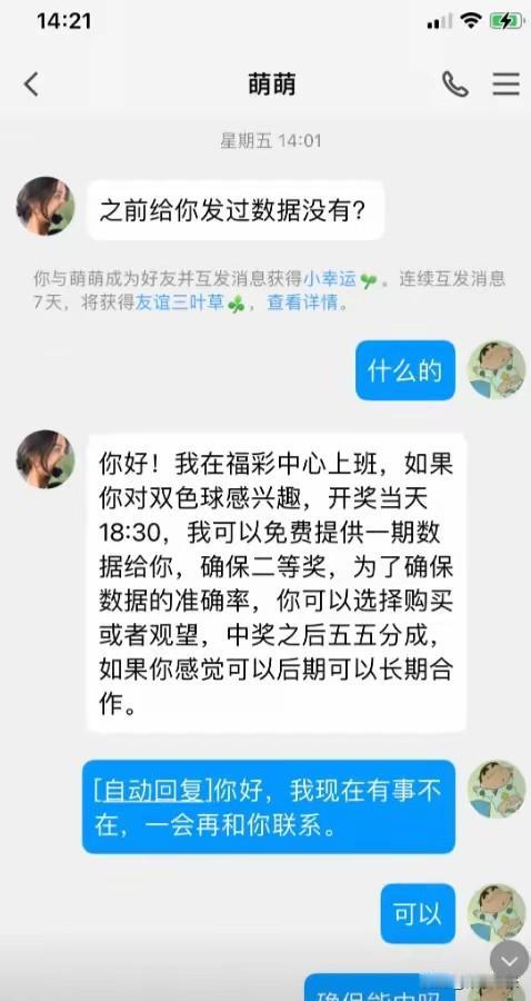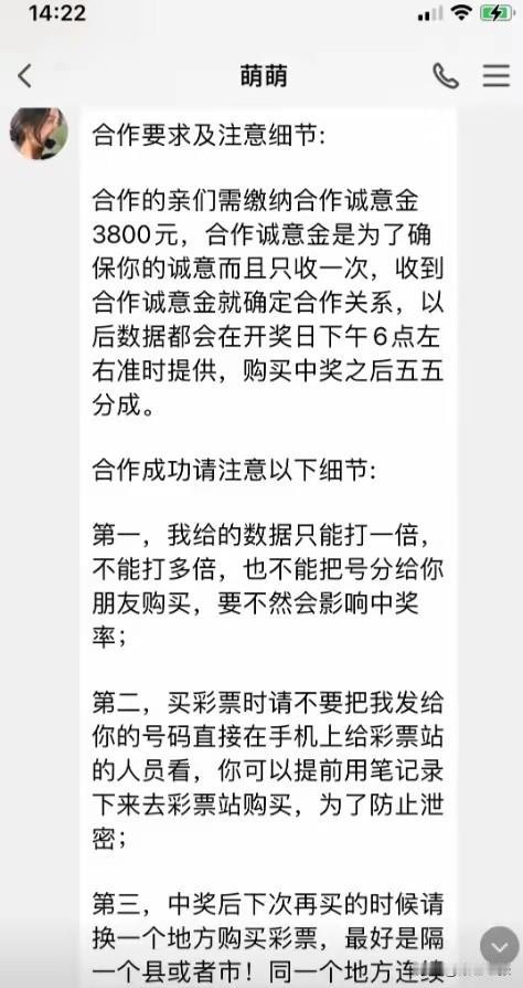 彩票中奖全凭运气,可总有骗子打着“包中”旗号行骗。像有人自称彩票中心内部人员,3800元卖号码还保证中二等奖,奖金五五分成,这骗术虽低劣,但还真有人上钩。 之前湖州的刘女士,刷到“有稳赚不赔的彩票包中渠道”就私信对方,在“导师”指导下下载APP,先后转23000元买“资料”,最后被告知操作失误要再转50000元解冻。还有栾川的王先生,被自称体彩中心“内部人员”诱导,先投500元赚了200元,再投10000元后平台提现关闭,“好友”拉黑他。售卖彩票预测就是智商税,大家可别天真上当!