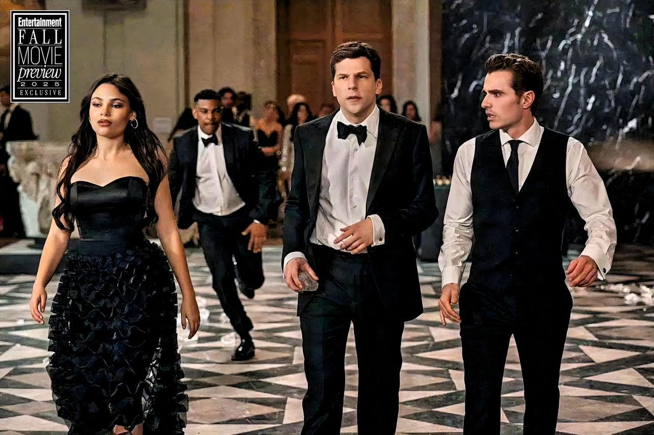 从剧情设定来看,《惊天魔盗团3》延续了前两部的风格,讲述“初代四骑士”时隔十二年惊喜重聚,与三位新生代魔术师组成全新骑士团,为揭露全球犯罪网络,向掌控庞大资本和隐秘势力的范德伯格“血色钻石家族”宣战的故事。影片中,骑士团的目标是一颗藏有全球犯罪网络核心秘密的“红心钻石”,这颗钻石不仅是权柄的象征,还与初代骑士某位成员父辈的死亡案息息相关,剧情充满了神秘色彩和悬疑感。 在剧情发展过程中,骑士团遭遇了重重困难和挑战。他们的首次行动就在巴黎卢浮宫的预热展上遭遇重创,原计划盗取钻石模型却中了反派设下的陷阱。此外,团队内部还爆发了裂痕,初代骑士与新生代魔术师在技术和手法上存在分歧。而摩根·弗里曼饰演的泰里斯意外现身,揭露了更多惊人的秘密,让剧情更加复杂和曲折。 从角色塑造来看,影片角色形象鲜明,冲突性强。金球奖影后裴淳华饰演的反派“钻石财阀”伊万娜,优雅又狠辣,她与骑士团的对抗是影片的一大看点。此外,团队内部还出现了“内鬼”,新生代中的科技鬼才因父亲曾被钻石家族灭口,加入团队本为复仇,却被伊万娜操控,这种复杂的人物关系和人性的展现,让剧情更加引人入胜。 《惊天魔盗团3》将于11月14日北美和中国大陆同步上映。
