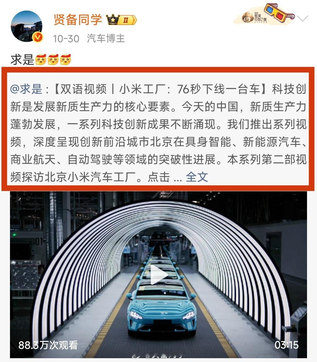 最近还有小米15 Ultra被作为特别礼物、大使馆也点赞小米武汉智能大家电工厂的科技效率,再加上这一波宝格丽CEO的高端赞扬。大家其实应该发现了,小米现在已经是咱们的一个科技创新的名片。走出去,把咱们的好产品,让老外也体验体验,这才是更值得自豪的存在。