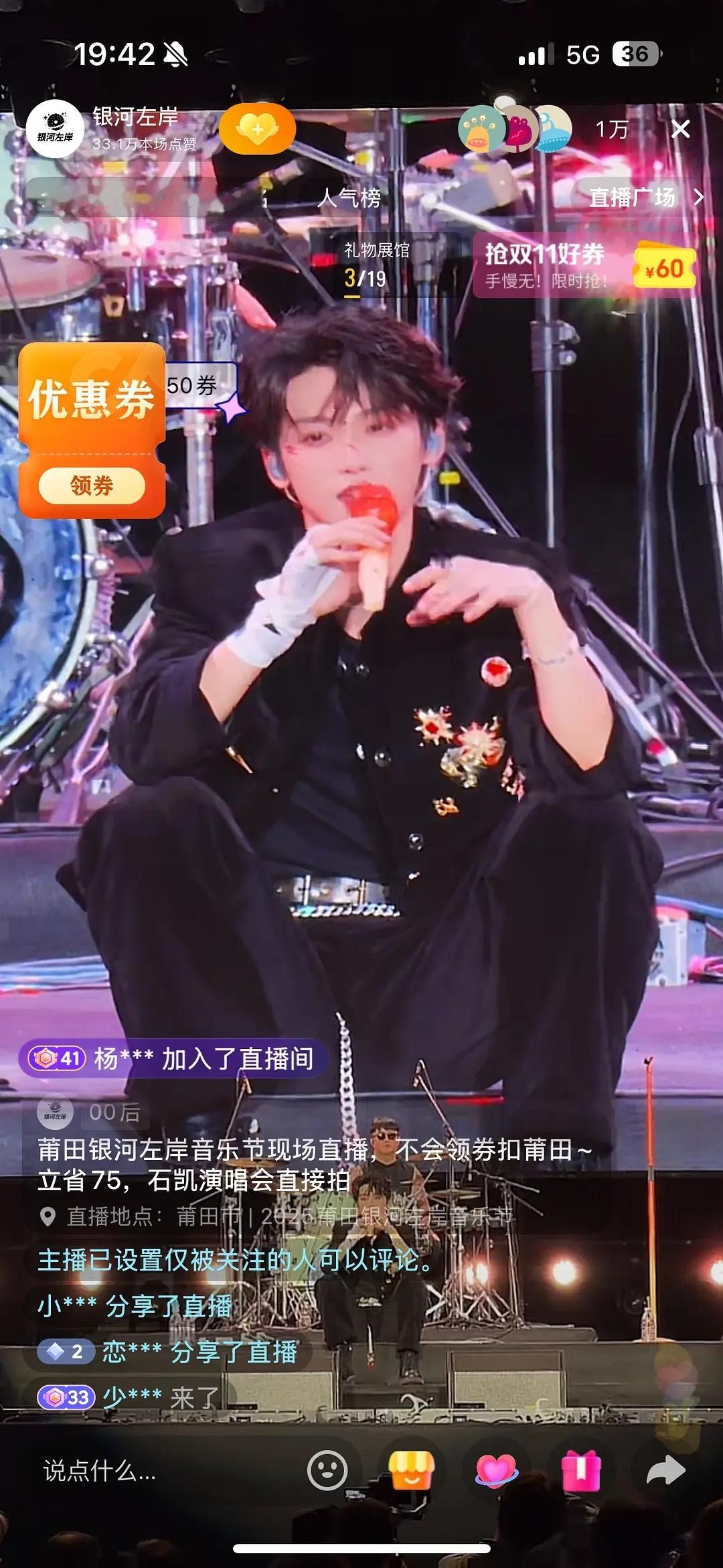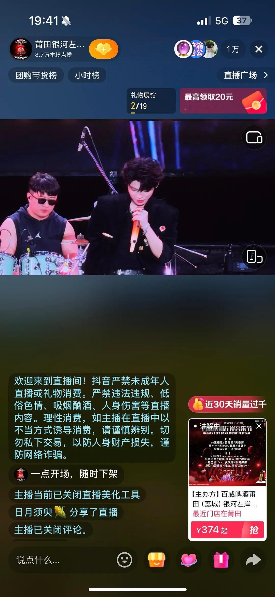 梓渝音乐节开场6分钟站姐出图,直播间观看人数超30万以上