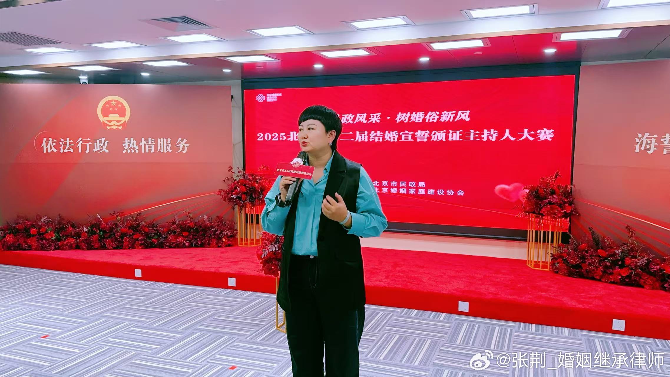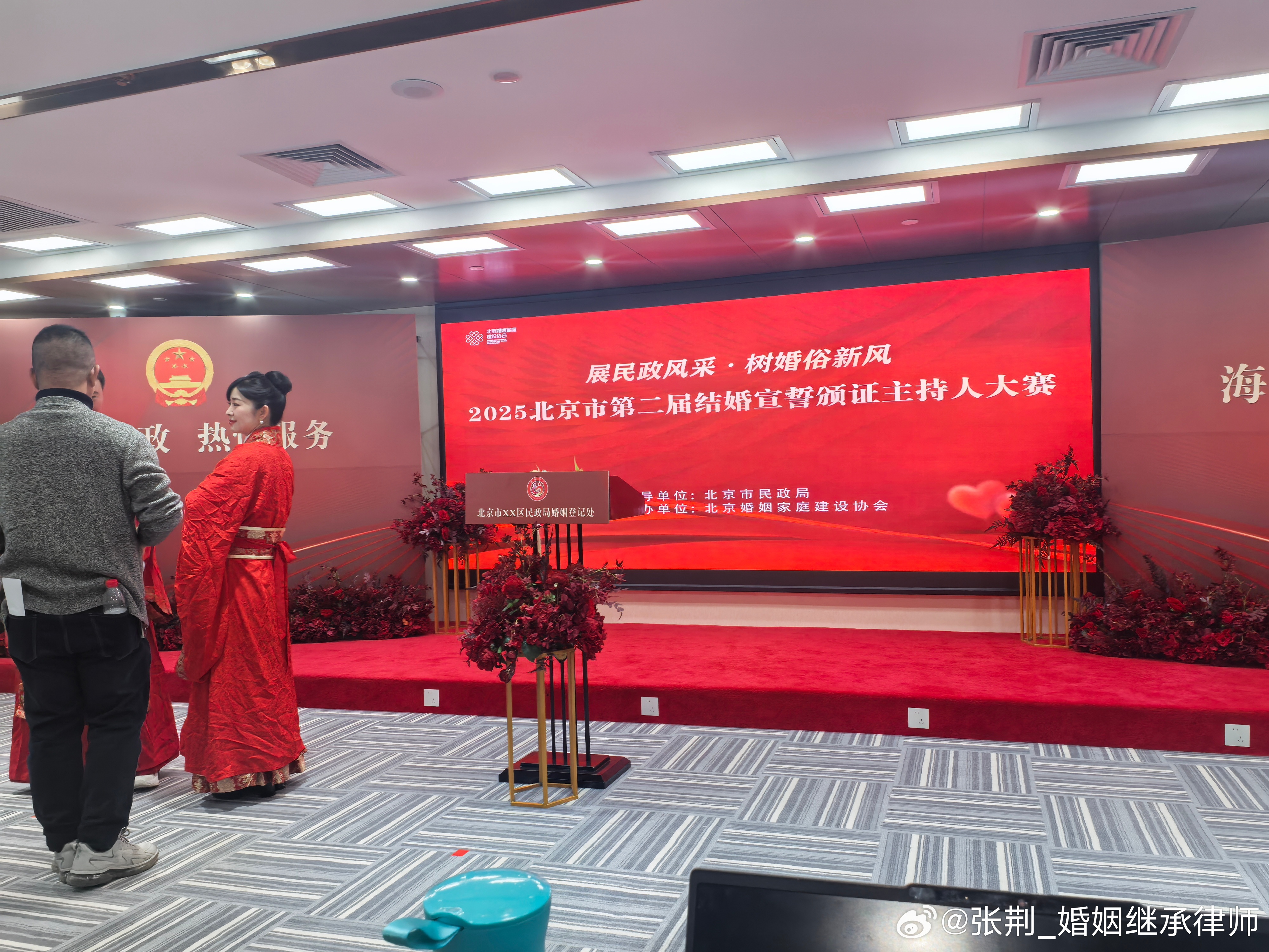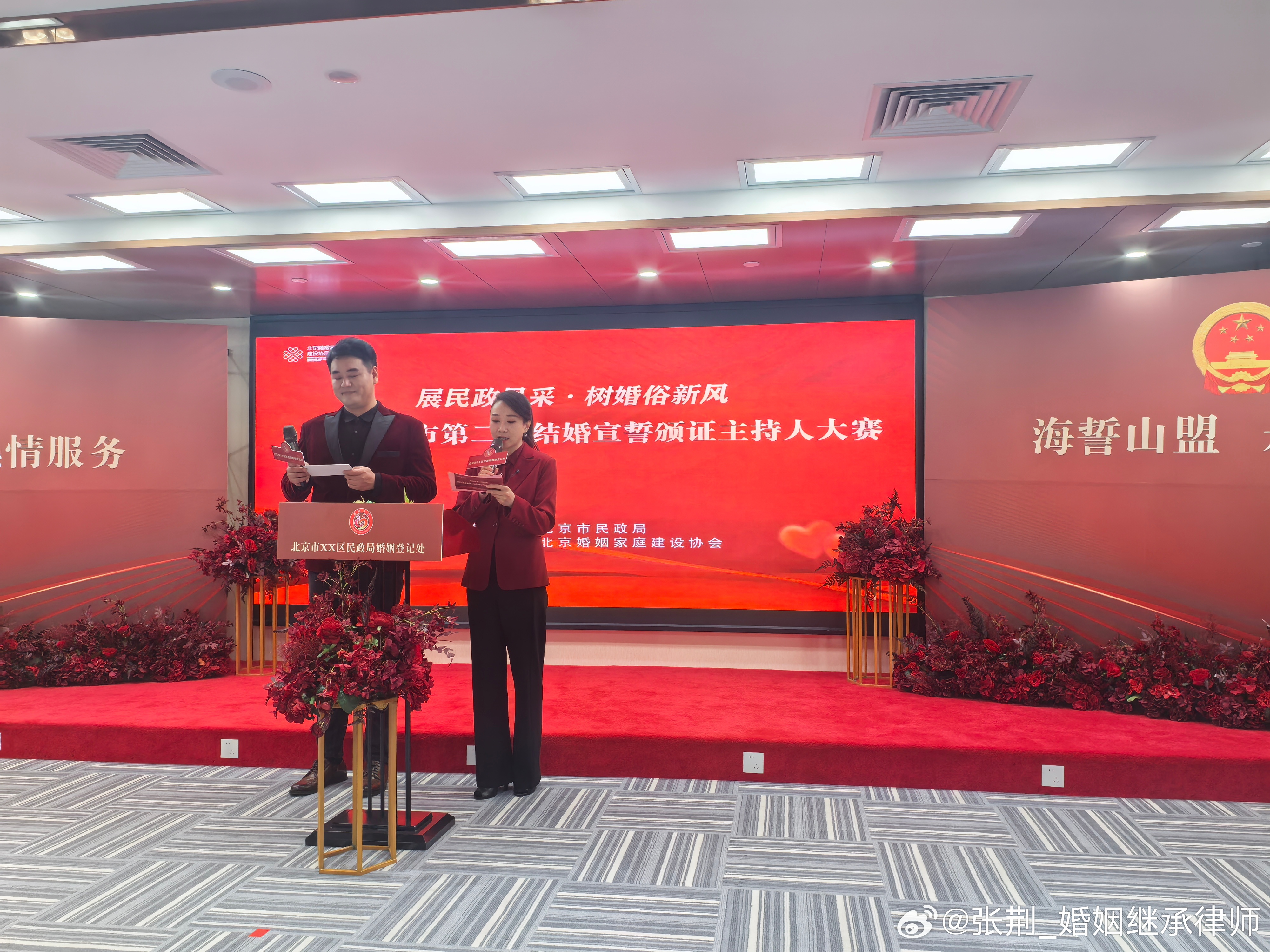 有幸担任第二届婚姻登记颁证员主持大赛的评委,各选手从形象到礼仪,从表达到表情,每个细节都尽力展现。这是一个见证幸福时刻的职业,只要热爱,每天都充满甜蜜。