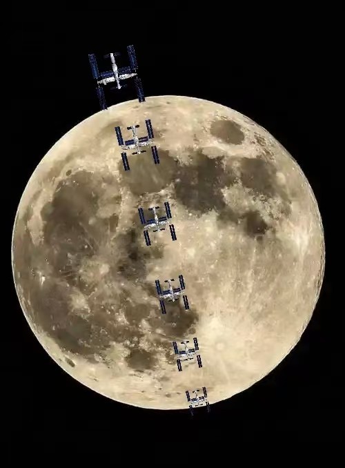 【人间奇迹】2025年11月5日21时恰逢超级月亮,摄影爱好者在上海拍摄的中国🇨🇳空间站凌月!