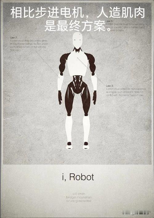 人形机器人跑偏了! 现在所有人型机器人用的都是步进电机,而不是人造肌肉,从仿生学角度来讲跑偏了。人造肌肉人形机器人才是终极方案。 要想造出真的人形机器人必须走仿生学道路,在这个赛道上不管现在谁领先,如果用的是步进电机那以后肯定落后。只有用人造肌肉的人形机器人才是终极产品。 美国的科幻片robot里的人形机器人用的就是人造肌肉。目前,虽然步进电机在人形机器人的应用上能让其实现一定的动作,但局限性也十分明显。步进电机的动作相对生硬,缺乏像人类肌肉那样的柔韧性和自然度。想象一下,当机器人与人互动时,僵硬的动作难免会让人觉得有距离感,难以真正融入人类生活场景。 而人造肌肉则不同,它模拟了人类肌肉的工作原理,能够实现更加细腻、自然的动作。就如同美国科幻片《robot》里的人形机器人,它们举手投足之间都充满了人类的灵动性,仿佛真的拥有生命一般。 在未来的家庭服务场景中,如果机器人要照顾老人和小孩,用人造肌肉的机器人能更好地把握力度和动作幅度,避免因动作不当造成伤害。在工业领域,它们也能更灵活地操作精密仪器,提高生产效率和质量。 不过,人造肌肉技术目前还面临着诸多挑战,比如能量供应、耐久性等问题。但我们不能因噎废食,应该加大对人造肌肉技术的研发投入。谁能率先攻克这些难题,让人造肌肉在人形机器人上大规模应用,谁就能在未来的机器人领域占据主导地位。相信在不久的将来,用人造肌肉打造的终极人形机器人会走进我们的生活,为我们带来前所未有的便利和惊喜。