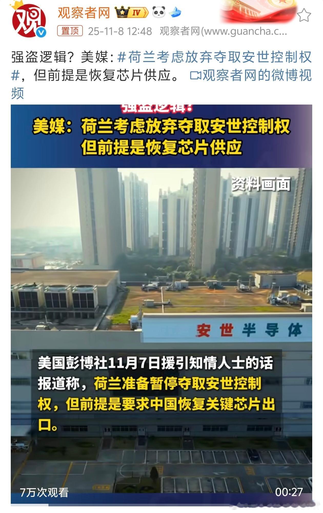 荷兰考虑放弃夺取安世控制权强盗逻辑,都2025年了还在搞这一套,也不知道荷兰是怎么想的。他们自己还委屈上了,果然是没脸没皮啊。面对这种行为必须坚持说不,让它们长长记性。 ​​​
