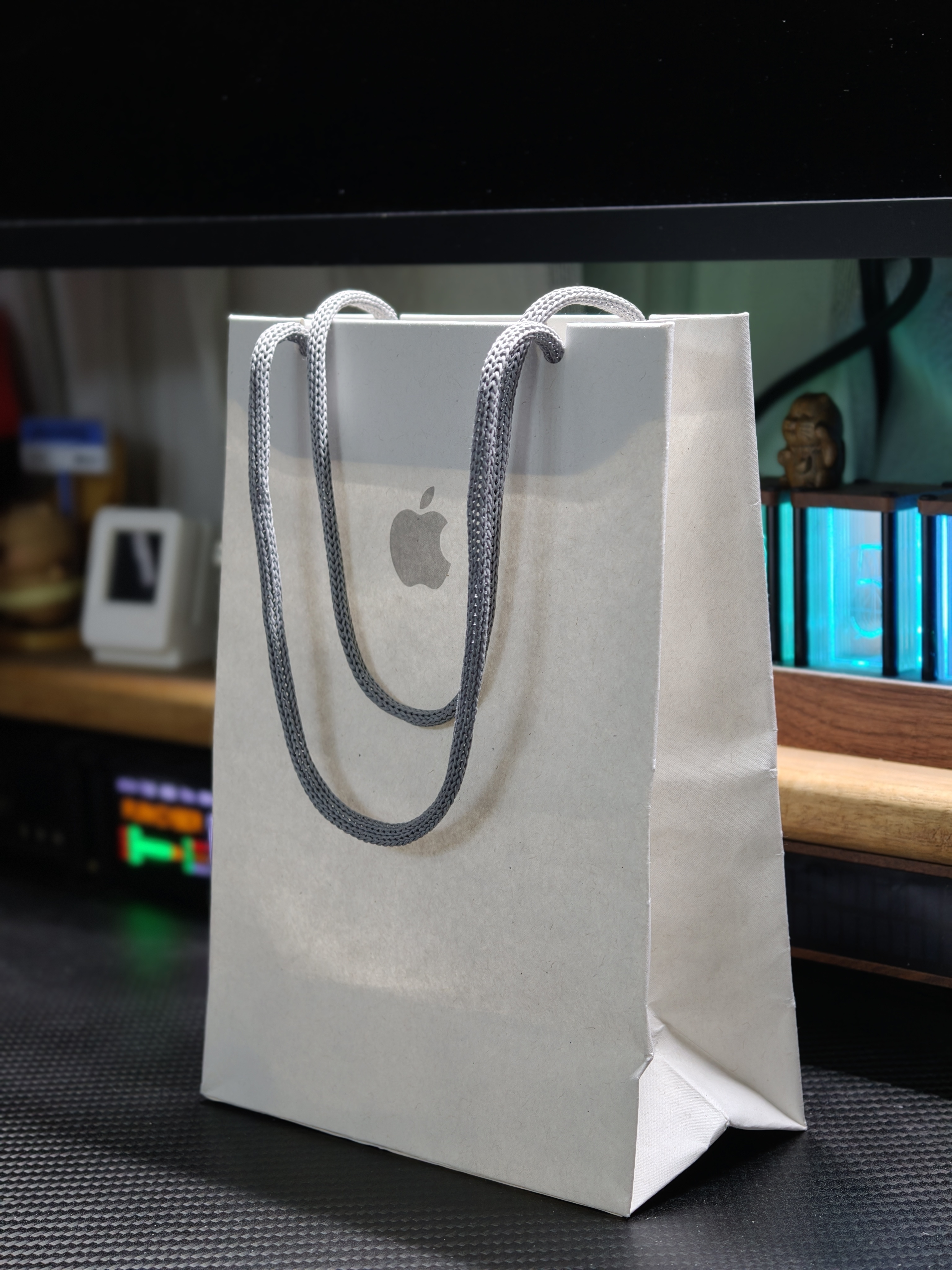 最夸张的是袋子的绳子部分也是纸做的,不说我都没看出来,苹果在环保这方面真有点丧心病狂了[哆啦A梦微笑]