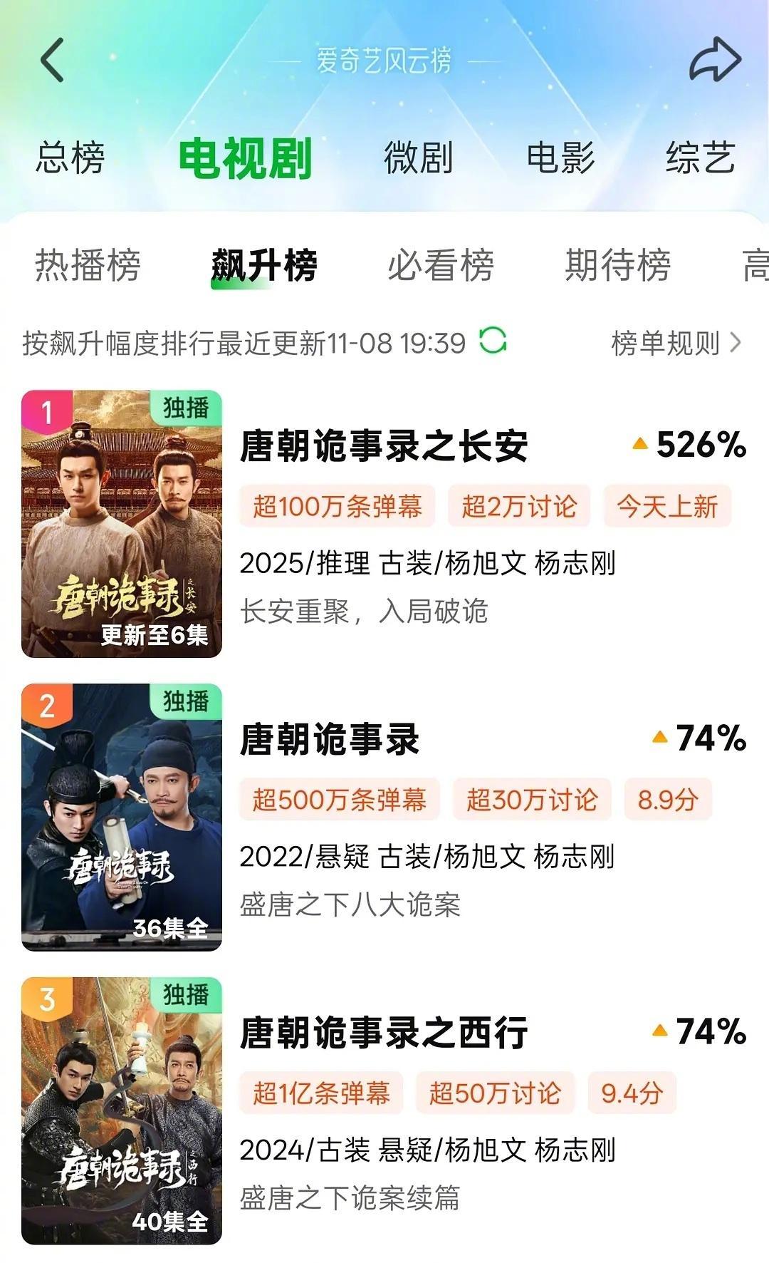 唐诡长安开播,🥝电视剧飙升榜前3被《唐朝诡事录》系列承包了[赞]
