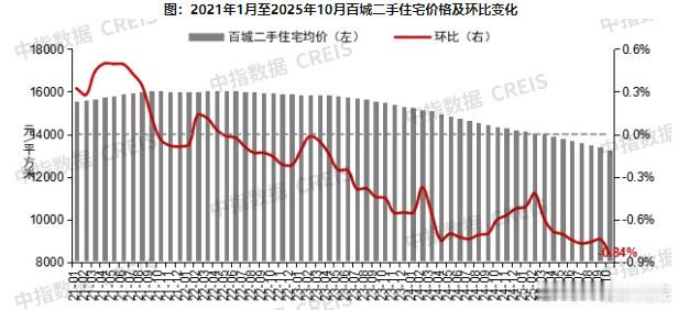 大好事儿,根据中指研究院的数据,2025年10月全国百城二手房价,环比负增长0.84%,同比负增长7.60%,一线城市继续负增长,全国房价继续加速价值回归继续,年轻人买房结婚的压力越来越小了。