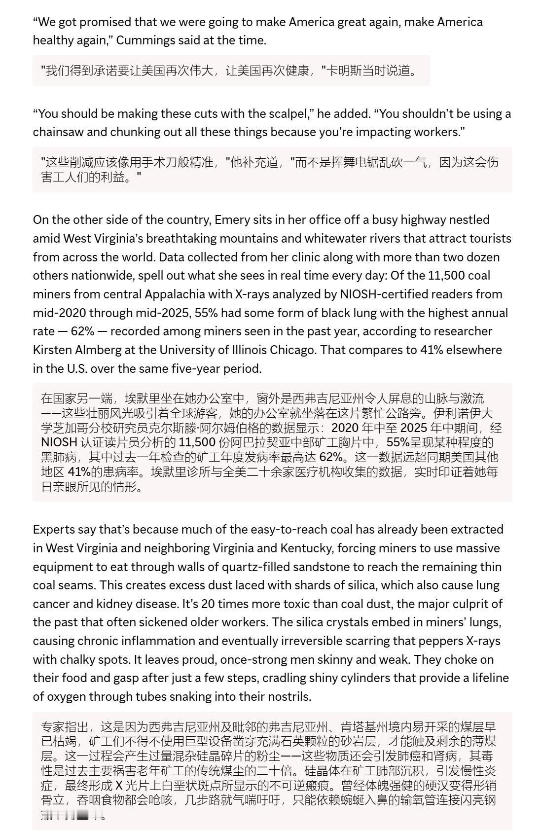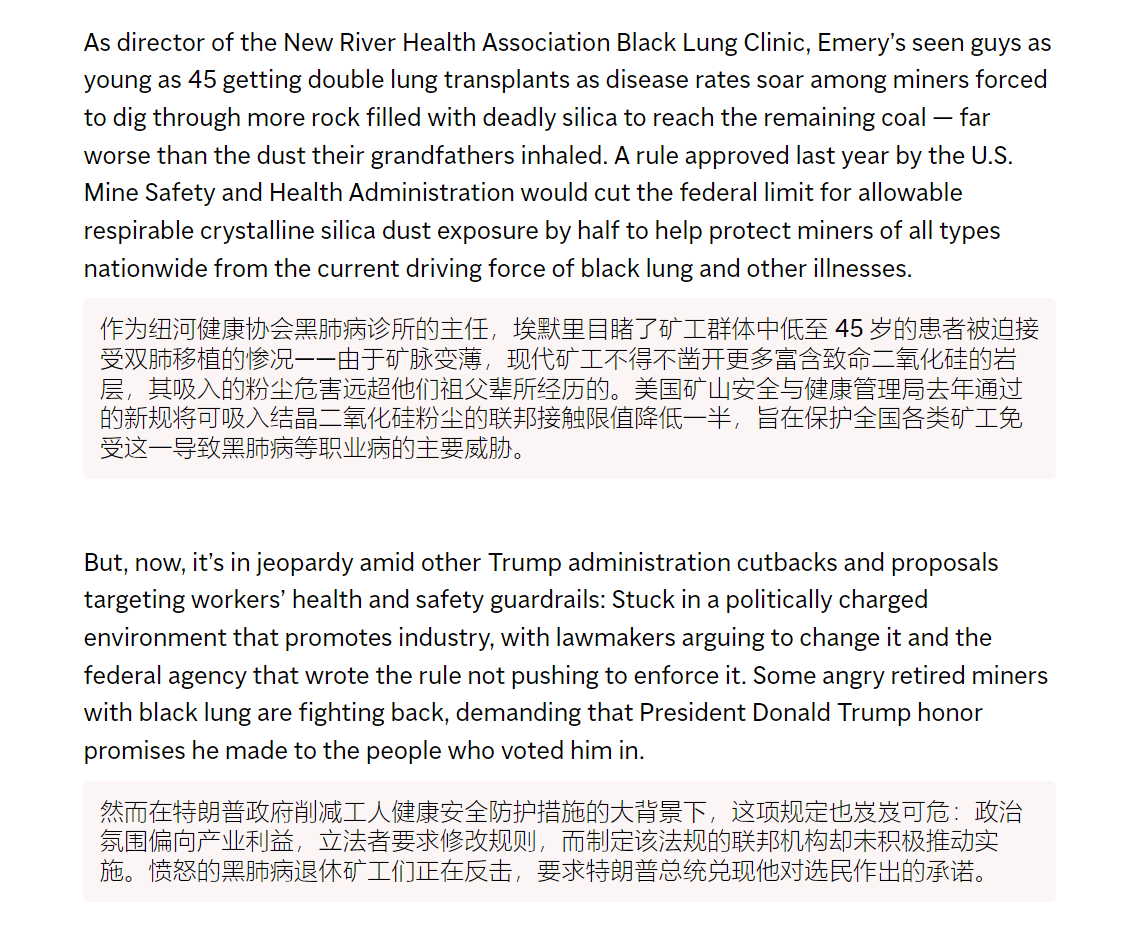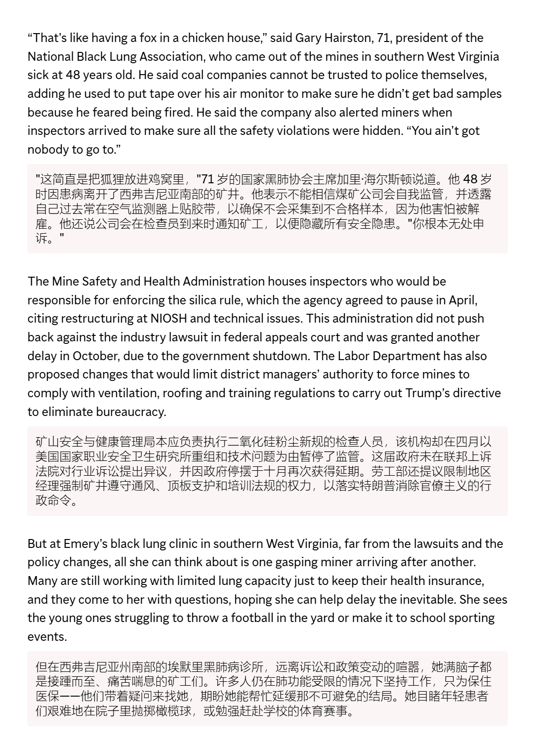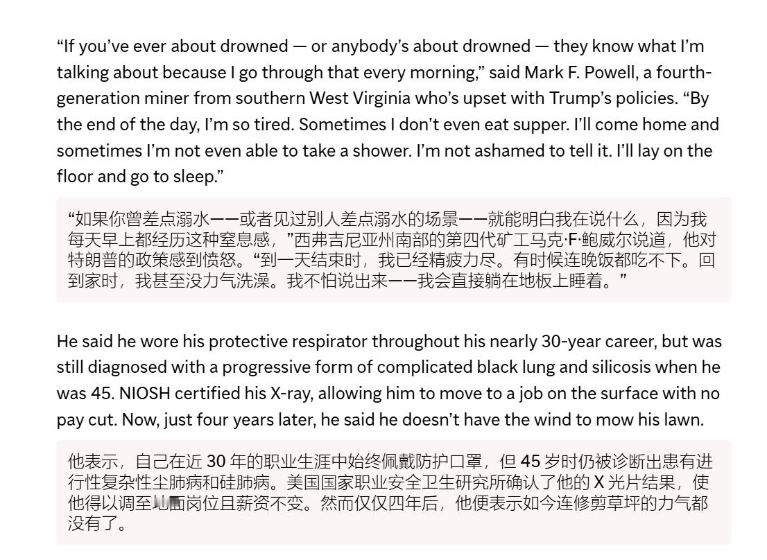 🔻美国矿工们在特朗普政府取消尘肺病防护措施后发声: