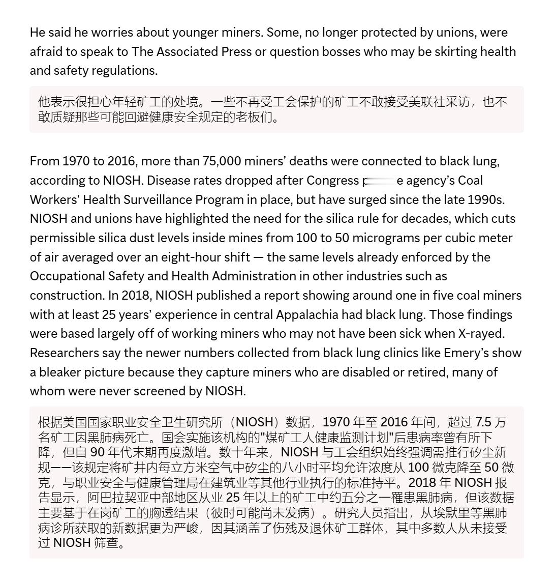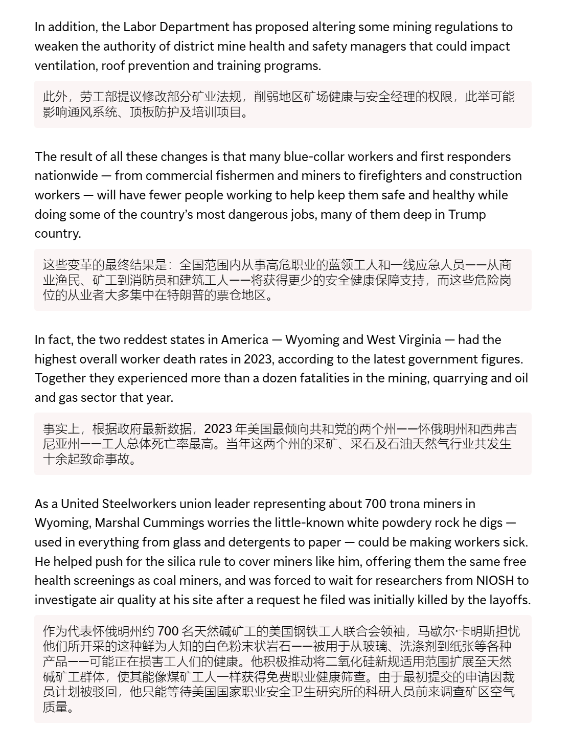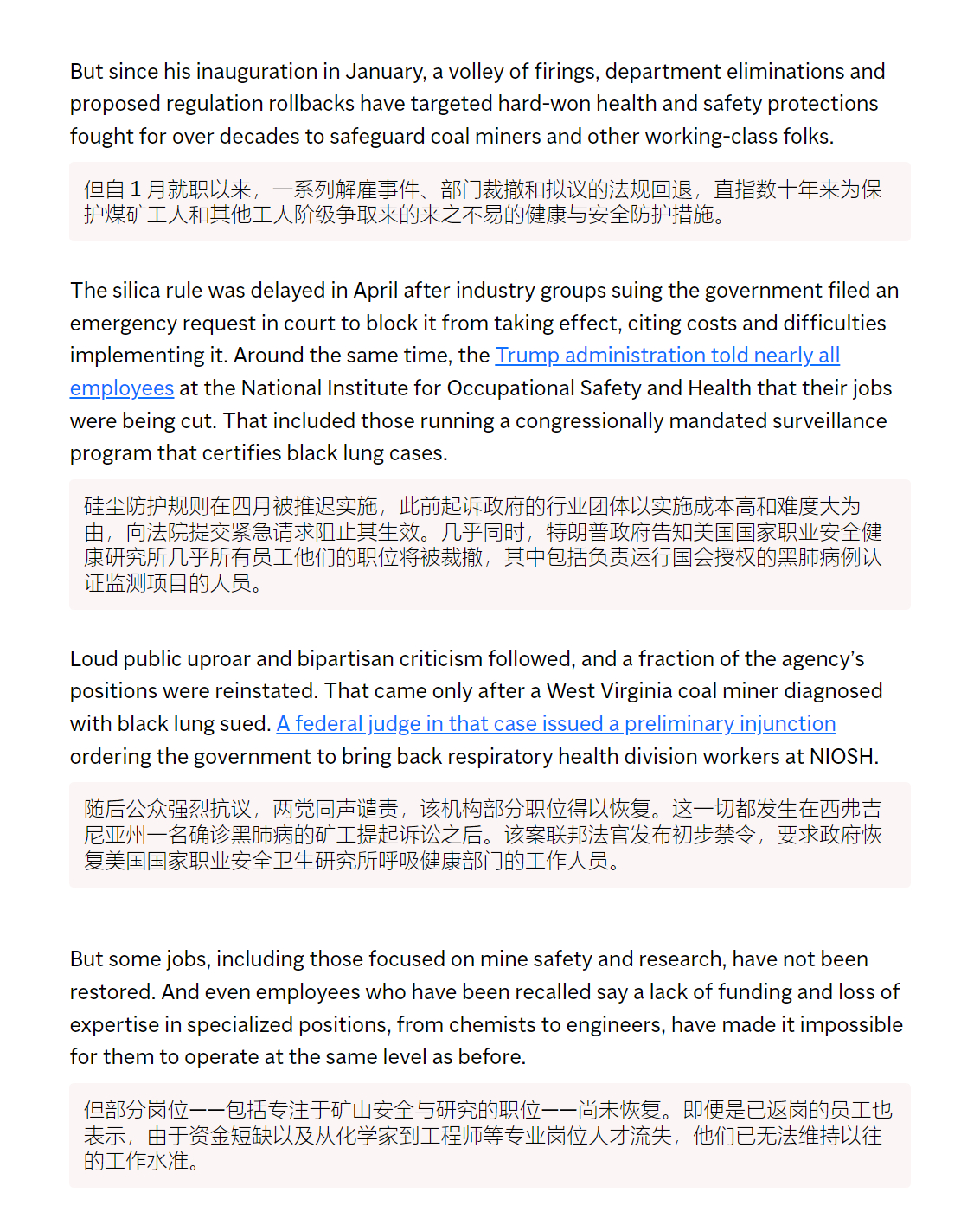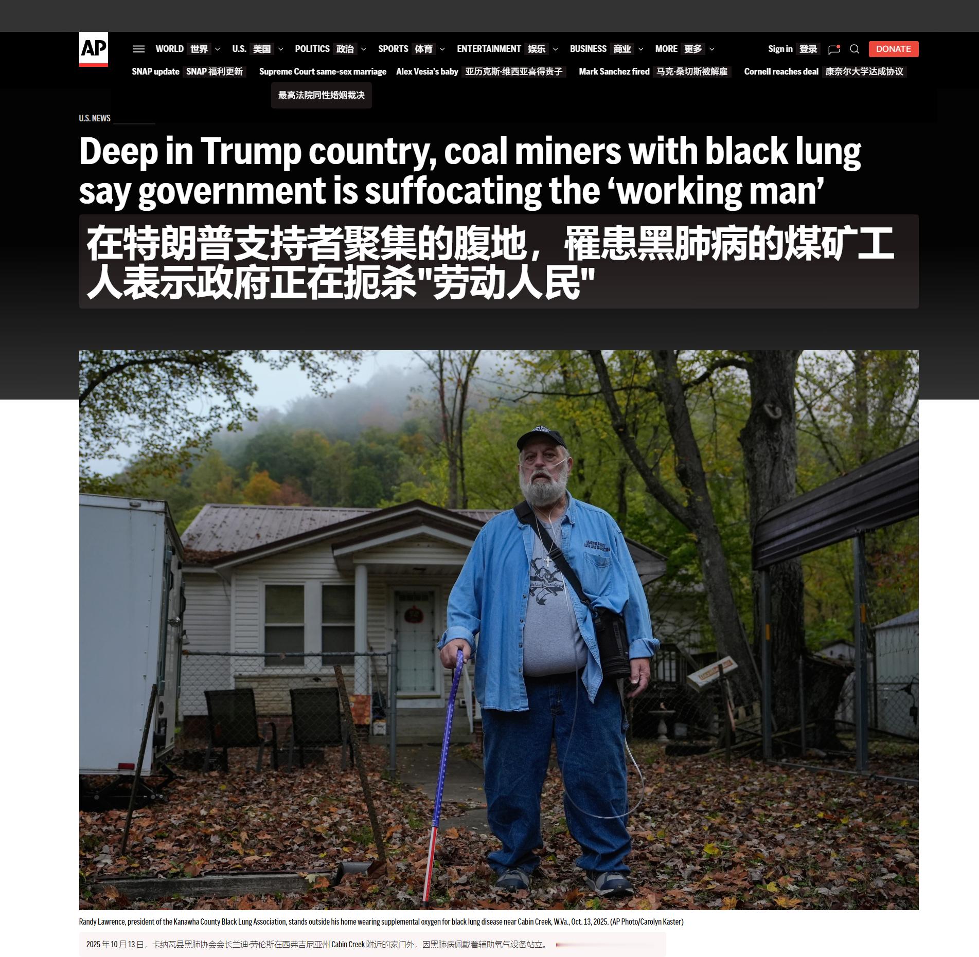 🔻美国矿工们在特朗普政府取消尘肺病防护措施后发声: