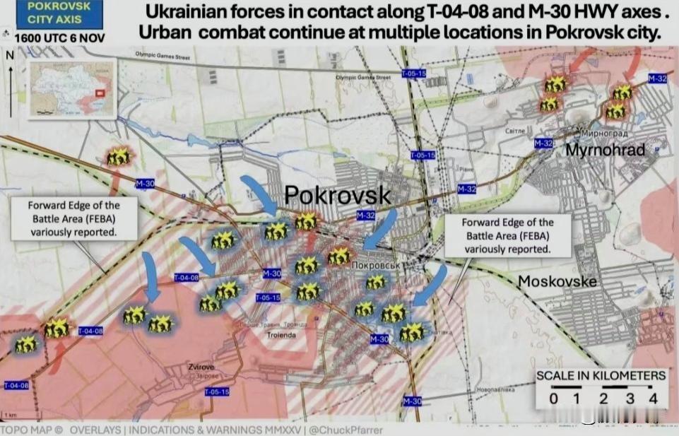 乌克兰围魏救赵见效果,俄军被迫按下暂停键 来源:史政先锋 今天是俄乌战争第1354天,战场内外均出现了不少新动态,好消息不少。 直接从大家最关心的波克罗夫斯克(红军村)战况说起。 乌克兰武装部队第8空降军昨日也到了波克罗夫斯克,使该方向力量显著增强。 泽连斯基11月7日表示,目前已可以确定渗透进默克罗夫斯克的俄军共341人,分布在85%的地区。为了减少巷战伤亡率,乌方采取了无人机和空军对渗透敌人打击的方式,昨日乌军第91独力营发现了俄军的踪迹后,随即呼叫空军支援,乌克兰空军使用数枚制导航空炸弹将目标彻底摧毁。 乌第7空突军联合新闻处昨天发布最新通报:俄军目前已减少了在波克罗夫斯克城区活动,以最大限度减少损失,等待主力增援..敌人多次伪装成平民试图进入格里申,被乌克兰守军成功歼灭。米尔诺赫拉德局势依然紧张,敌人在东线进攻失败后正在调整攻击方向,未来3天波克罗夫斯克之战很可能会进入高潮…… 以下蓝色箭头为乌军主要进攻方向 乌军第68“柯南”旅在向军方报告中反映,昨日有1辆俄军卡车进入波克罗夫斯克,无人机未能发现……… 针对这一动态乌军立即行动起来,此前渗透的俄军都是轻步兵,乌军已将其与俄军大部队的后勤斩断,俄多次尝试修复补给线,使用摩托车与车辆运送人员,都被乌军无人机撕碎,如今竟出现了卡车…….城市与周边的乌军安全部队、突击部队、空降部队、特种部队、国土防御旅及国家警察部队沿着T-05-08公路和M-30公路一字排开,加大了搜索力度。 东北方向的多布罗皮利亚传出好消息,大家先看地图 在西尔斯基将军的组织下,乌军1军团昨日对多布罗皮利亚镇被包围俄军发起猛攻,从图中能够看出,第1个包围圈内的俄军已被歼灭,第2个与第3个包围圈面积也越来越小。 很显然,乌军已成功对俄军进行了战术切割,将多布罗皮利亚与米尔沃赫拉德两个战场连成一片,拓宽了防御面,若能尽快吃掉这两股敌军,俄方的“包围”计划将完全流产。 红色箭头代表俄军已从波克罗夫斯克与米尔诺克拉德派出战略预备队增援,目前看来,希尔斯基将军的围魏救赵起到了一定作用…不救援是不可能的,不救援西北防线就会被撕开,陷入乌军反包围。 其他热点战场 库皮扬斯克方向的俄军昨日发起了进攻,但规模不大,如以下红色箭头所示 但沿着P79公路推进的前锋部队不幸陷入乌军的包围中,估计很快被歼灭,因为被包围俄军仅为第6集团军的两个突击连。 俄方此前一直宣传5天打下库皮扬斯克,事实上不可能的,以俄军当下的兵力远远不够,目前该方面作战的俄军包括第1近卫坦克军(一部),第20集团军、第6集团军和“库班”国际志愿者营等,这些部队大多战损严重,不满编。 利曼战场的俄军6日派出突击队潜入市区,7日就被乌军找到并予以歼灭,因为利曼郊外是大田野,渗透俄军无处藏匿。 俄军昨日向乌克兰境内发射了128架无人机,被乌防空部队击落/拦截了94架 乌军特种部队11月6日夜间7日凌晨对俄占克里米亚的格瓦尔代斯克村附近“格瓦尔代斯卡亚”油库展开了猛烈袭击,摧毁RVS-400油库与两列满载油罐的油料列车.……. 此外,乌方还打击了新菲罗波尔与比特姆内村的俄军油库和储油罐,爆炸引发了大火。 10月28日~11月4日俄军新增战死军官33 人,从而使阵亡军官总数达到7133 人。 乌克兰无人机10月份给侵略军造成了创纪录的伤亡。泽连斯基称,乌军无人机10月份击毙25000名侵略兵。英国国防部确认,自战争爆发以来,侵略兵伤(重伤)亡人数超过114万。乌军无人机司令布罗夫迪表示,无人机部队付出27人阵亡的代价,摧毁了24895名侵略兵和76950个目标,相当于两个完整的军。 免责声明:图文来源网络,如侵权请联系删除!