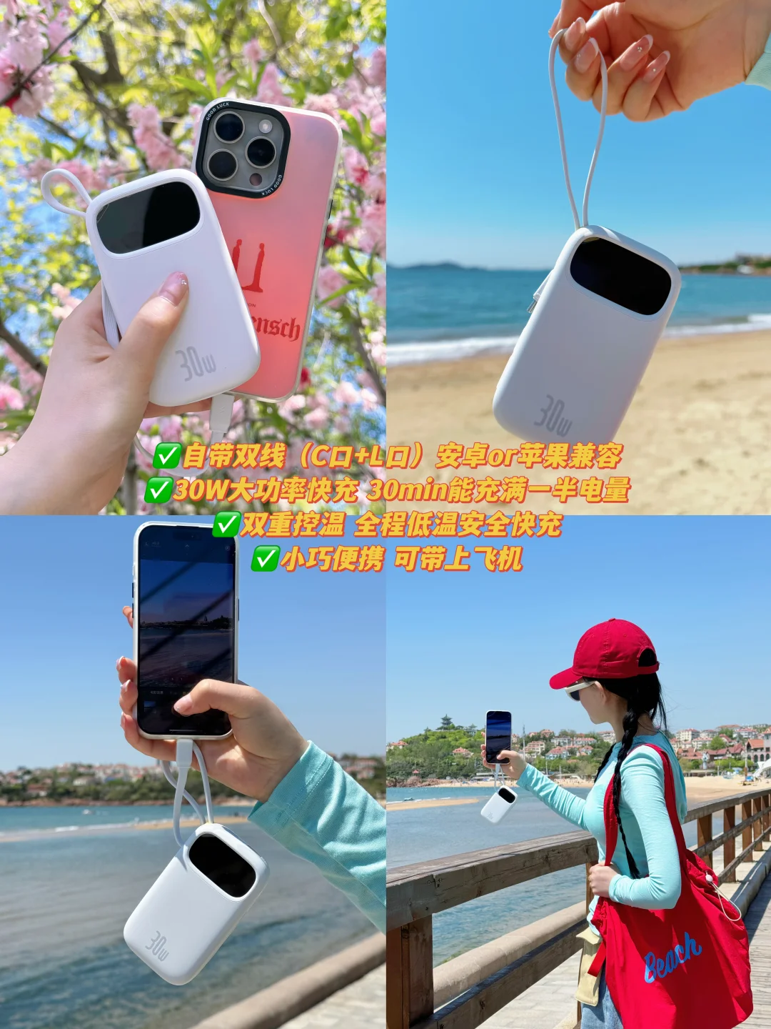 出门旅行带一个好用的充电宝太重要了❗️「倍思充电宝」真的🉑 不仅小巧便携 而且自带双线 安卓or🍎都能用 重点是边拎边充的设计太方便了叭❗️30w大功率快充 而且全程低温 出门带它真的很安心❤️