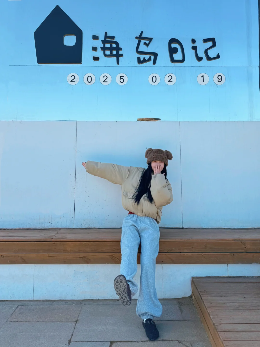 打卡孤独的松柏树 右边就是超好看的果冻海啦🏝️站在阶梯上拍彩色立牌和海岛来信 直出人生照片