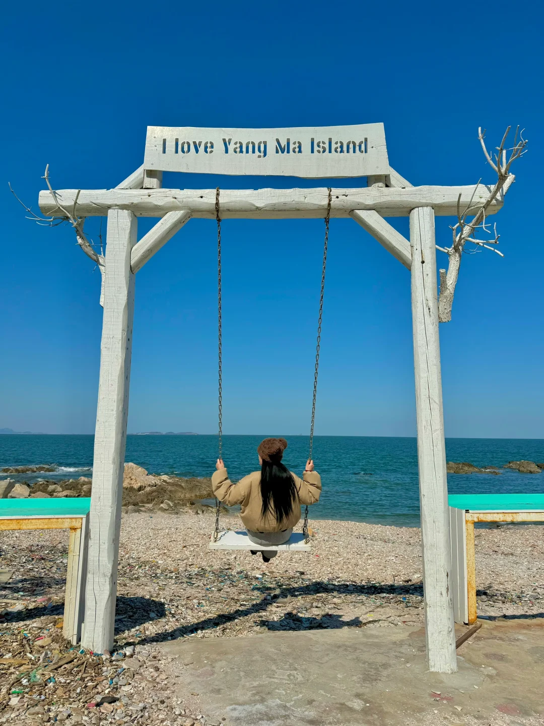打卡白色海边秋千 氛围感直接拉满