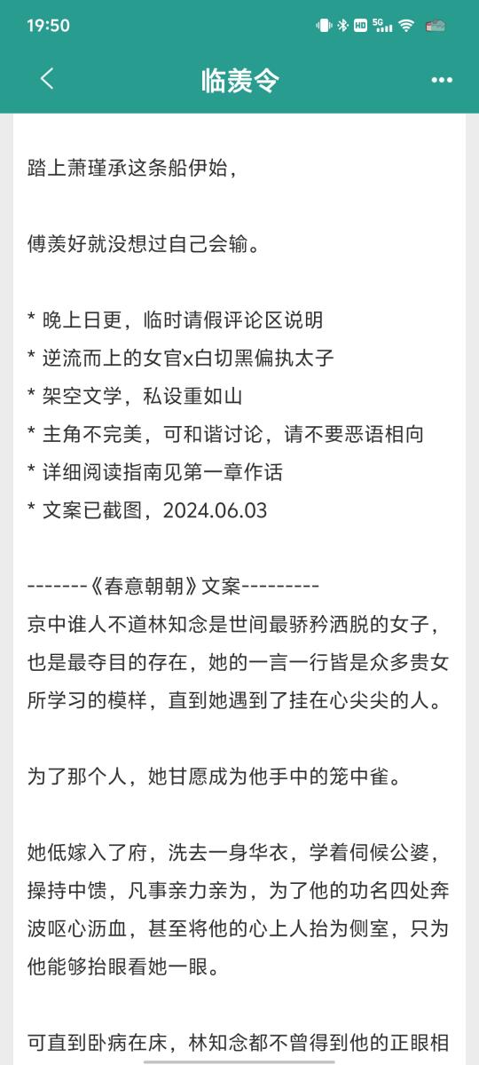正在连载的文,很肥可入 女主是世家贵女,十一岁被送进宫中为质,一直陪伴在皇后身边,是宫中女官。皇后是继后,膝下有位三皇子,从小就喜欢女主。等到许婚的年纪,皇后想让女主嫁给自己儿子为正妃。女主不愿,在皇后宫殿外跪了很久。 男主是先皇后所出的太子,很久之前就和女主暗中有联系。男主看中女主的才智可以为自己出谋划策,女主仰赖男主的地位照拂自己。她并不想入宫门王府,在宫里这些年厌倦了尔虞我诈,只想要自由。