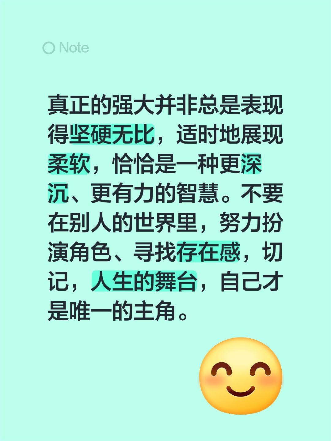 真正的强大并非总是表现得坚硬无比,适时地展现柔软,恰恰是一种更深沉、更有力的智慧。不要在别人的世界里,努力扮演角色、寻找存在感,切记,人生的舞台,自己才是唯一的主角。