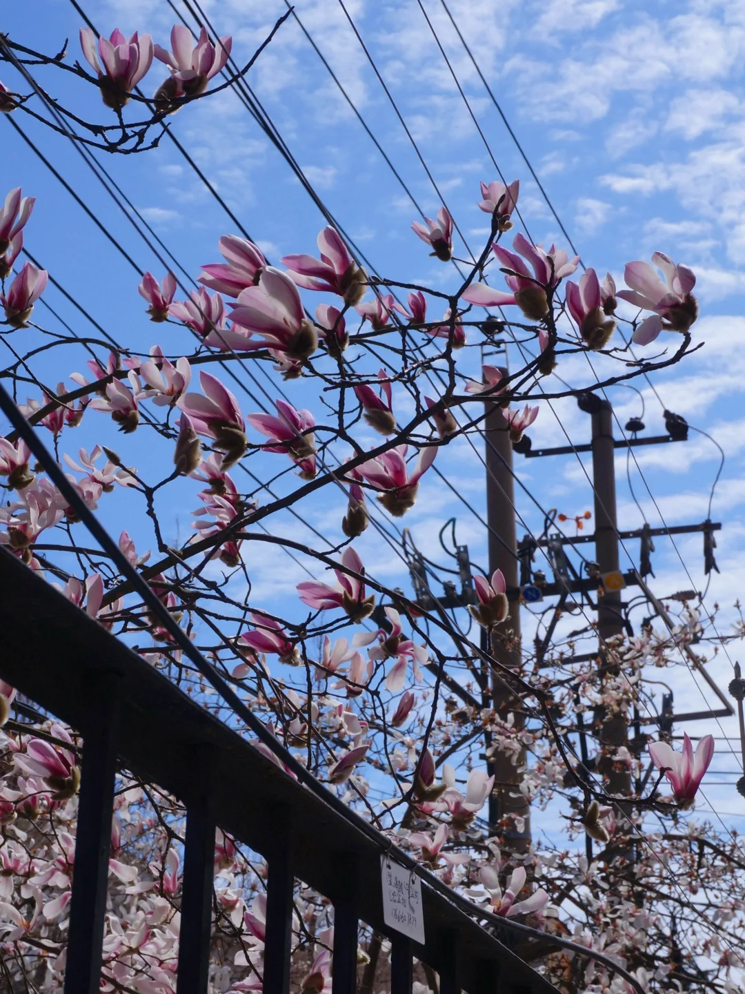📷一整条街两侧开满了玉兰花,旁边居民区有梯子🪜可与玉兰花同高近距离拍摄