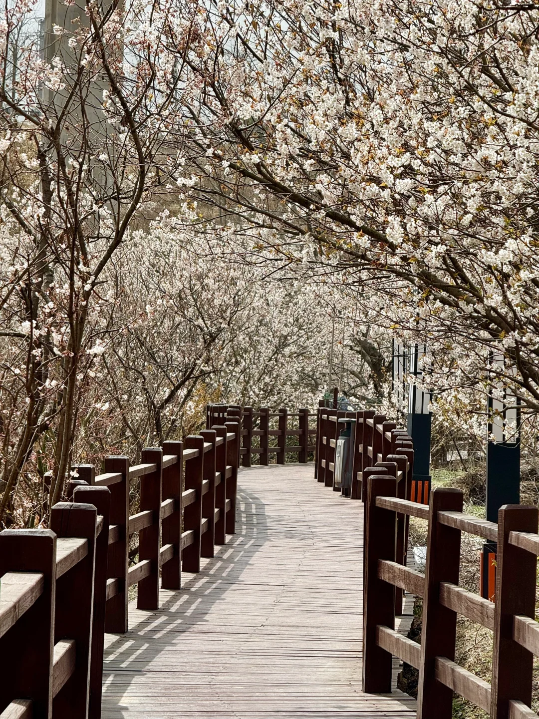 📷拍两侧布满樱桃花的木栈道,被🌸包围的清澜栖院,上凉亭拍开往春天的地铁🚄