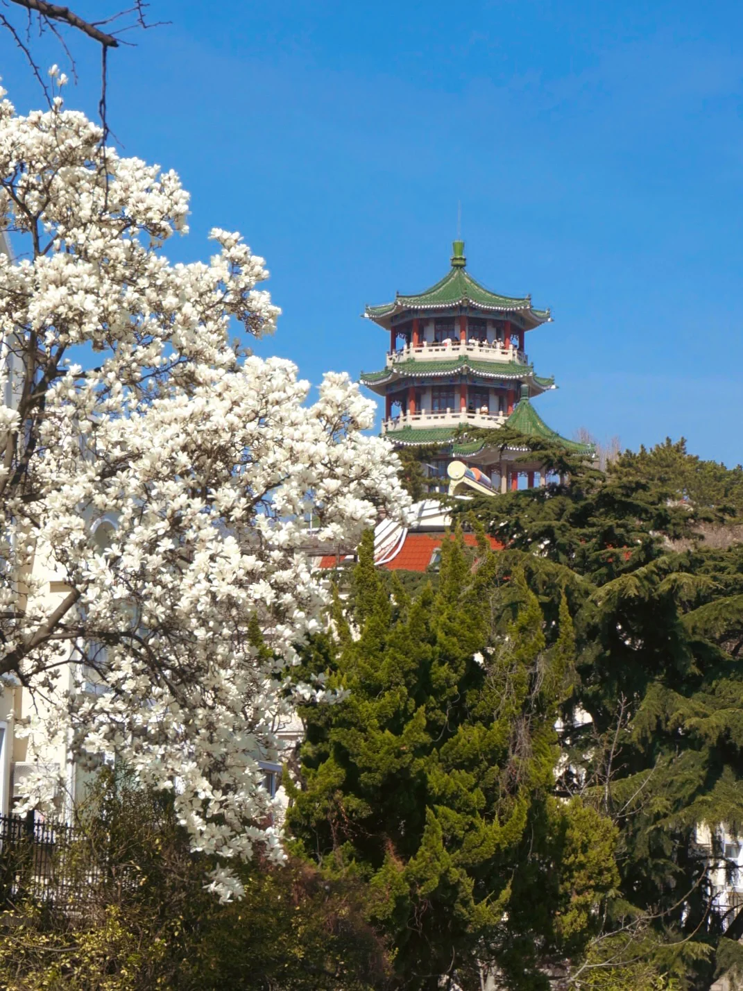 📷有两棵很大的玉兰花树,可拍玉兰花跟青岛电视塔同框