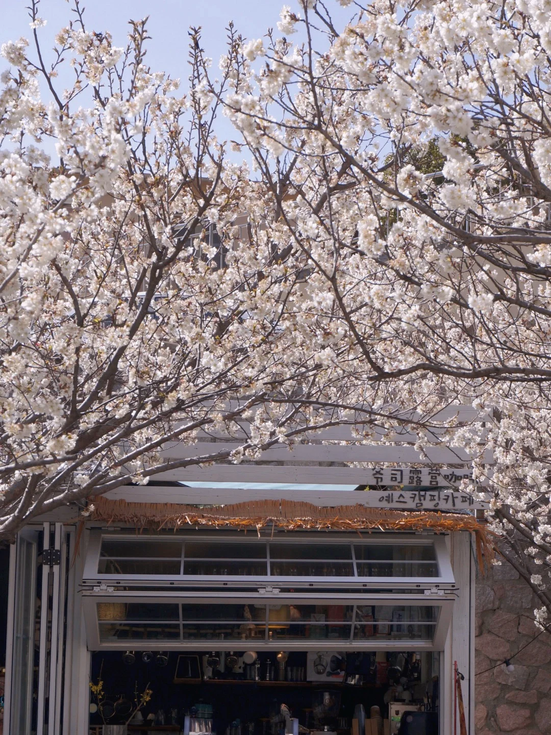 📷韩国大叔开的,被樱桃花海包围的咖啡店,尊嘟好美好治愈!早点去人很多