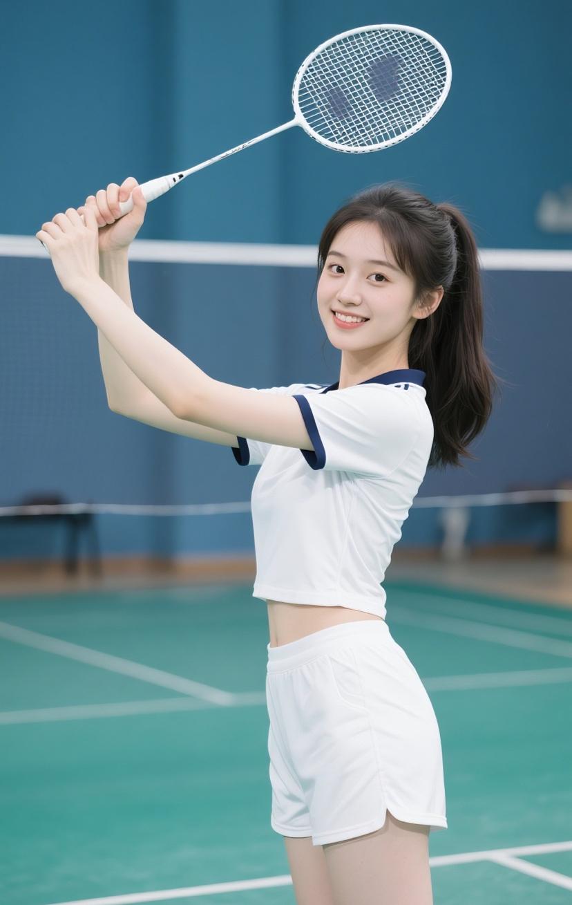 活力满满!🏸️挥拍少女,运动时刻!💪🏻羽毛球运动少女