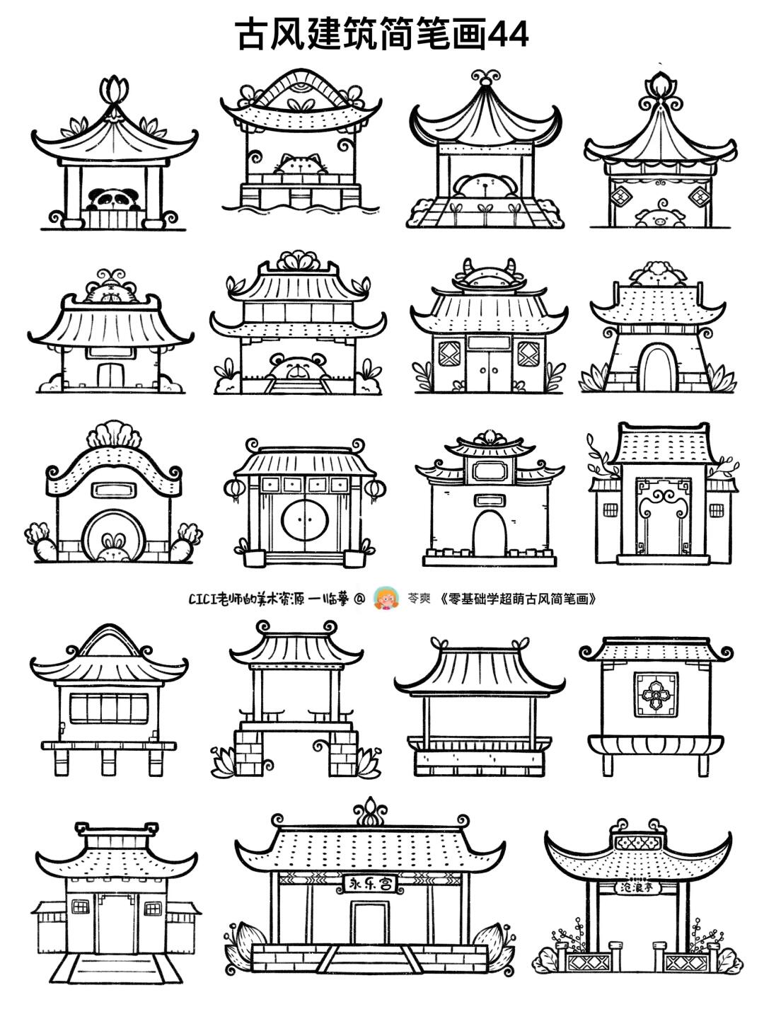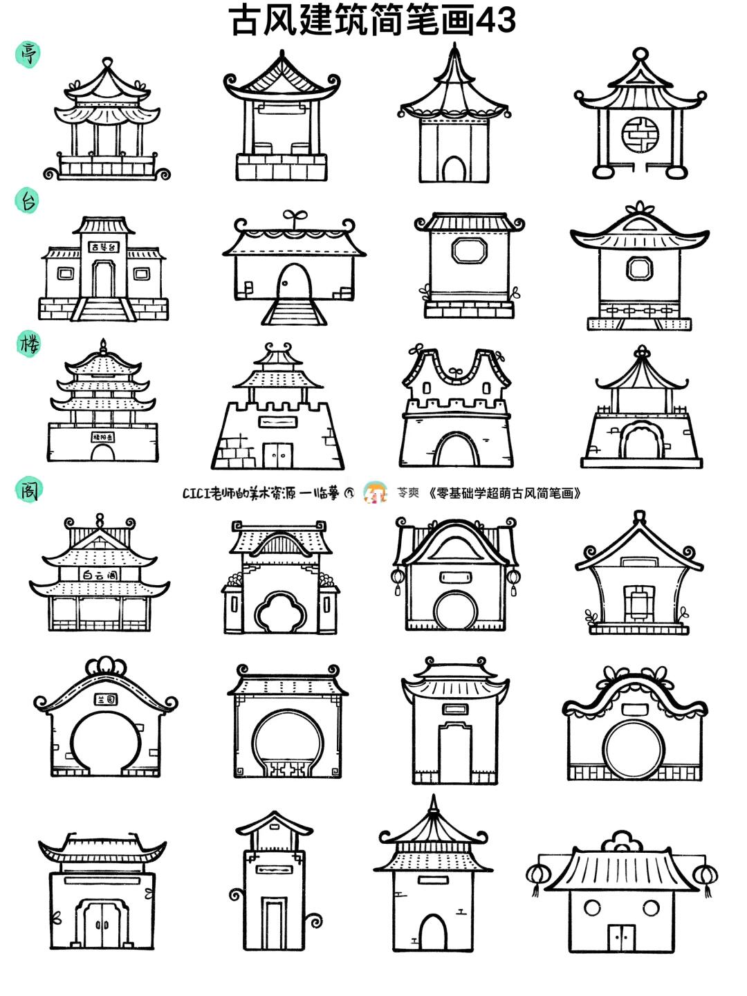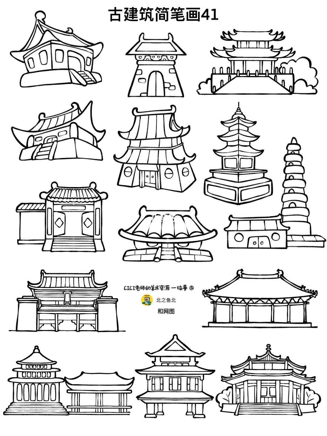 🏠 古风建筑、中式建筑、传统建筑、古镇房屋简笔画合集🏠 🈶️江南民居、家乡的老房子、亭台楼阁、塔、桥等。 🎨造型参考适用于儿童画、主题画、手抄报、黑板报、手账素材、及与“房子、古建筑”相关的美术课程: -人教版二下15课《家乡变了样》 -人教版五下18课《旅游节》 -人美版一上第6课《漂亮的建筑》 -人美版一下第22课《我为环境添绿色》 -人教版六上13课《古建筑的保护》 -人教版六下15课《我国古代建筑艺术》 -人美版六上17课《家乡的老房子》 -人美版六上18课《家乡的历史发展》 -浙美版四下12课《亭子》 -人教版三下16课《家乡的桥和塔》 -人美版二上第2课《雄伟的塔》 -浙美版四上第4课《家乡的古塔》 👩‍🎨备注:不是原创,全部临摹书和的大佬们, 📔篇幅太多,这里就不一一圈了,图上都有标注, 💃前面每张图的笔记文案都有圈原作者哦,临摹的作品不上色,参考上色作品去原作者那里找哦。 👩‍🏫如有喜欢的画风和需要可以去翻前面的笔记找她们哦💡 🈲️商用勿转载,仅供学习参考,🎨临摹请注明出处并