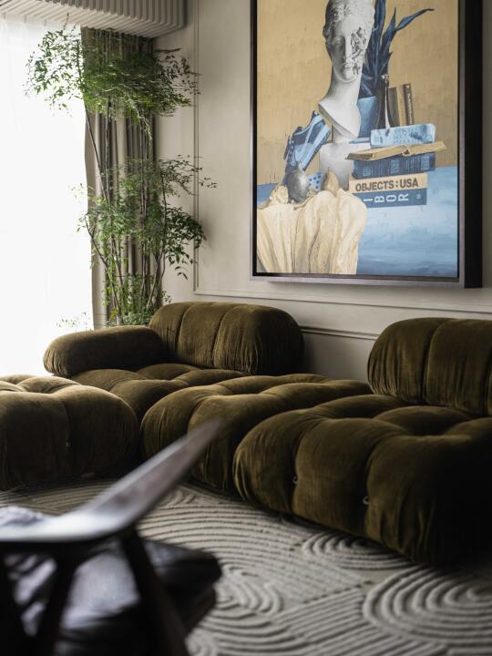 这个坐落于香港繁华中心地带的130㎡公寓,不仅是他们个人生活的避风港,更是他们设计理念与风格演变的重要里程碑。在这里,每一处细节都凝聚着他们对设计的无限热爱与执着,一个集现代美学、实用功能与温馨氛围于一体的居住空间应运而生。
