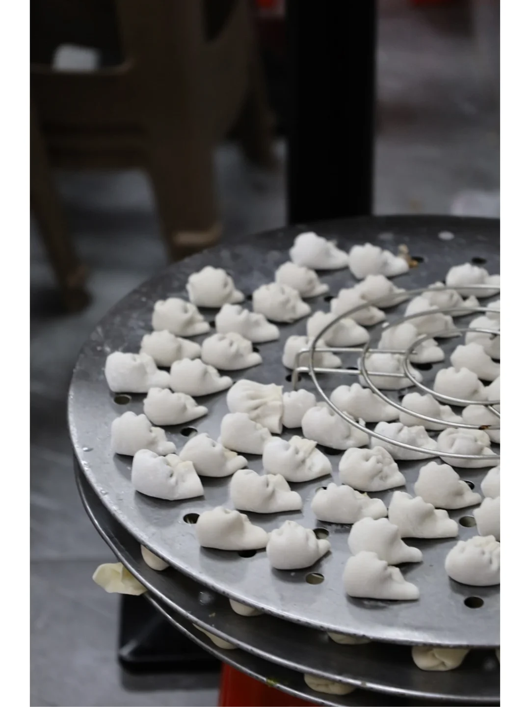 有甜咸两种口味,饼皮和馅料都是现点现做,很新鲜,而且馅料分量很足。