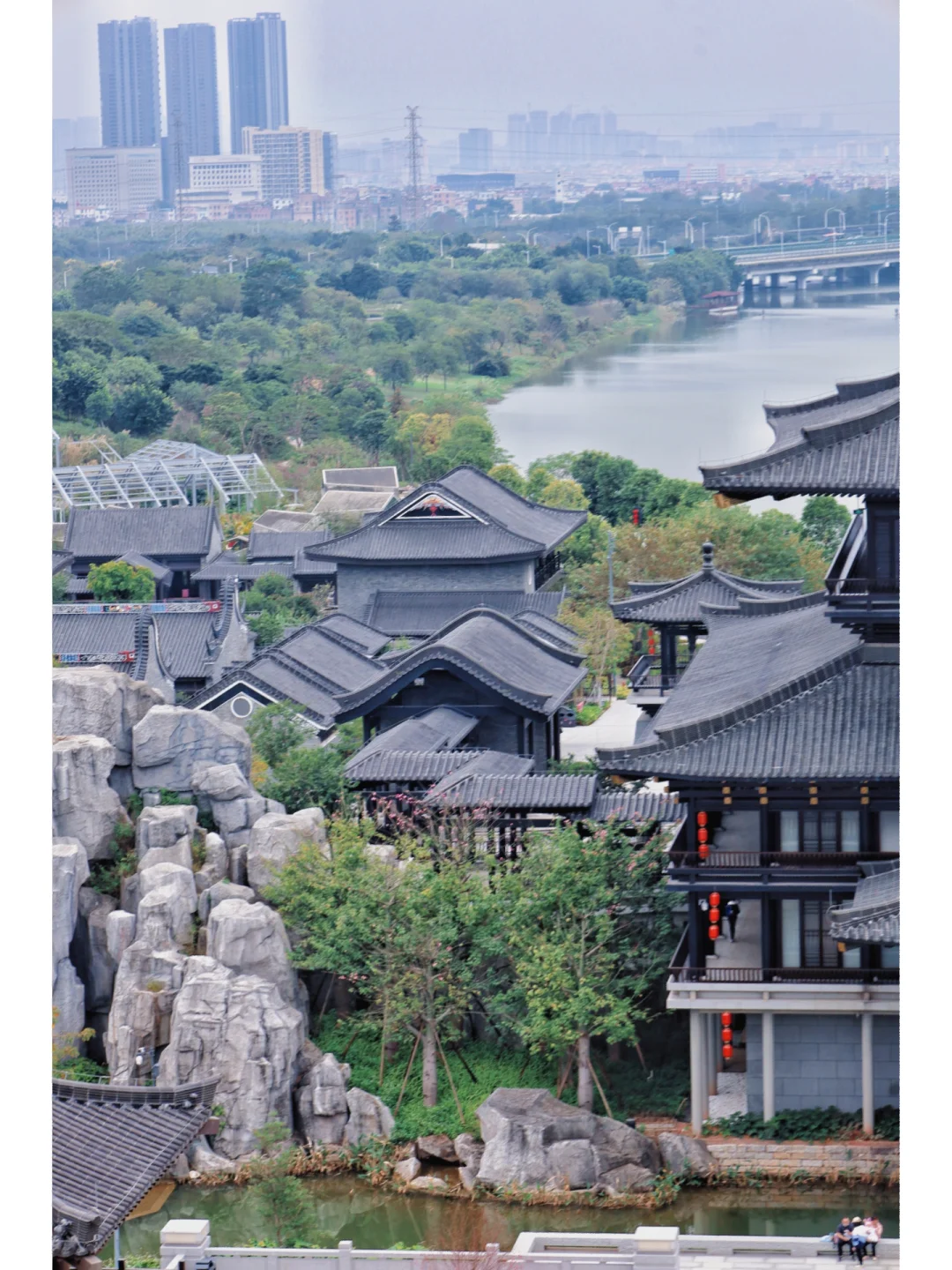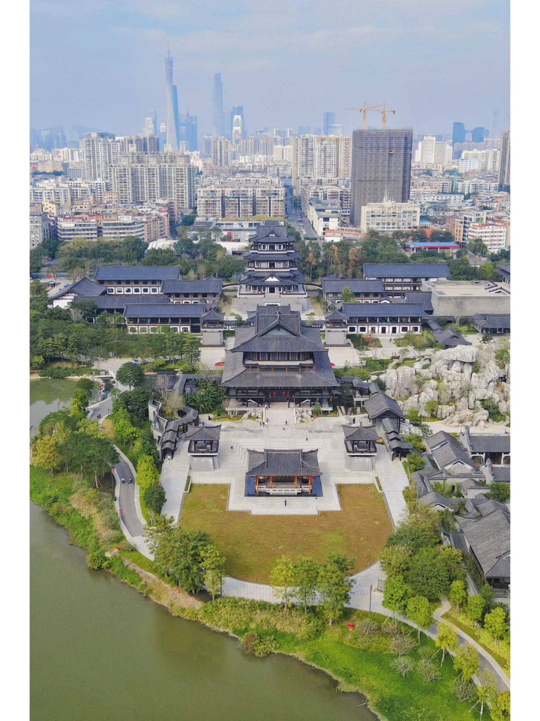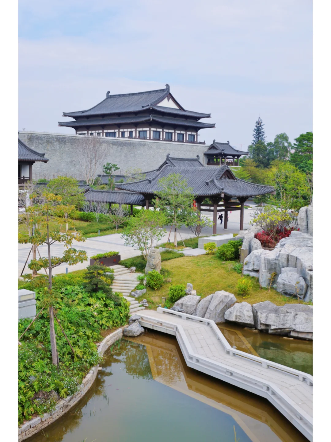 ✔️以“十里红云一湾水,八桥画舫十六亭”为建设规划理念,用传统建筑和园林空间的组合,建设成为一个风格鲜明的岭南园林式的文化,包含公共文化中心、文艺中心、广绣风雅园、岭南翰墨园、客家风韵园、曲水观景园等多个岭南特色园区