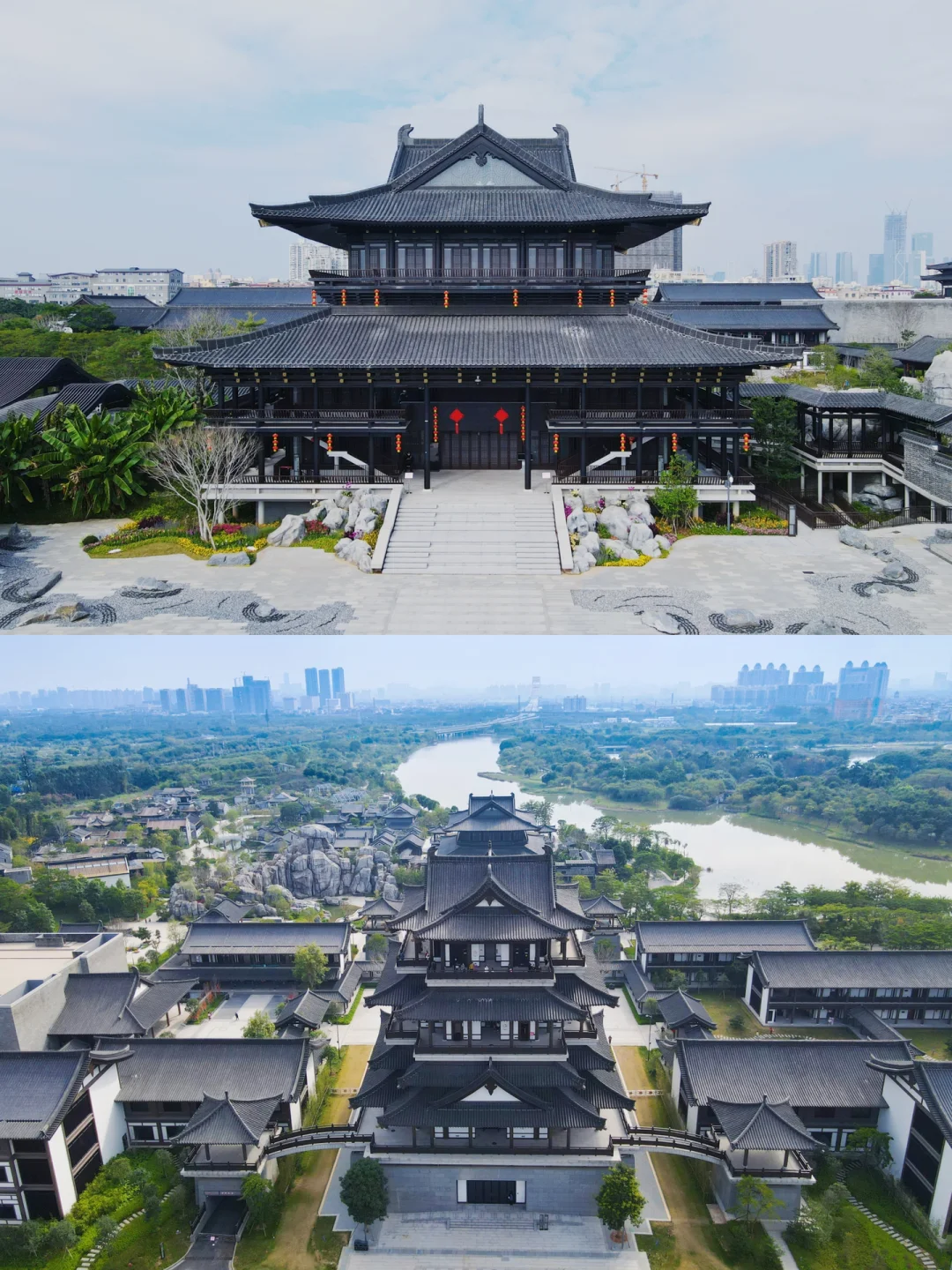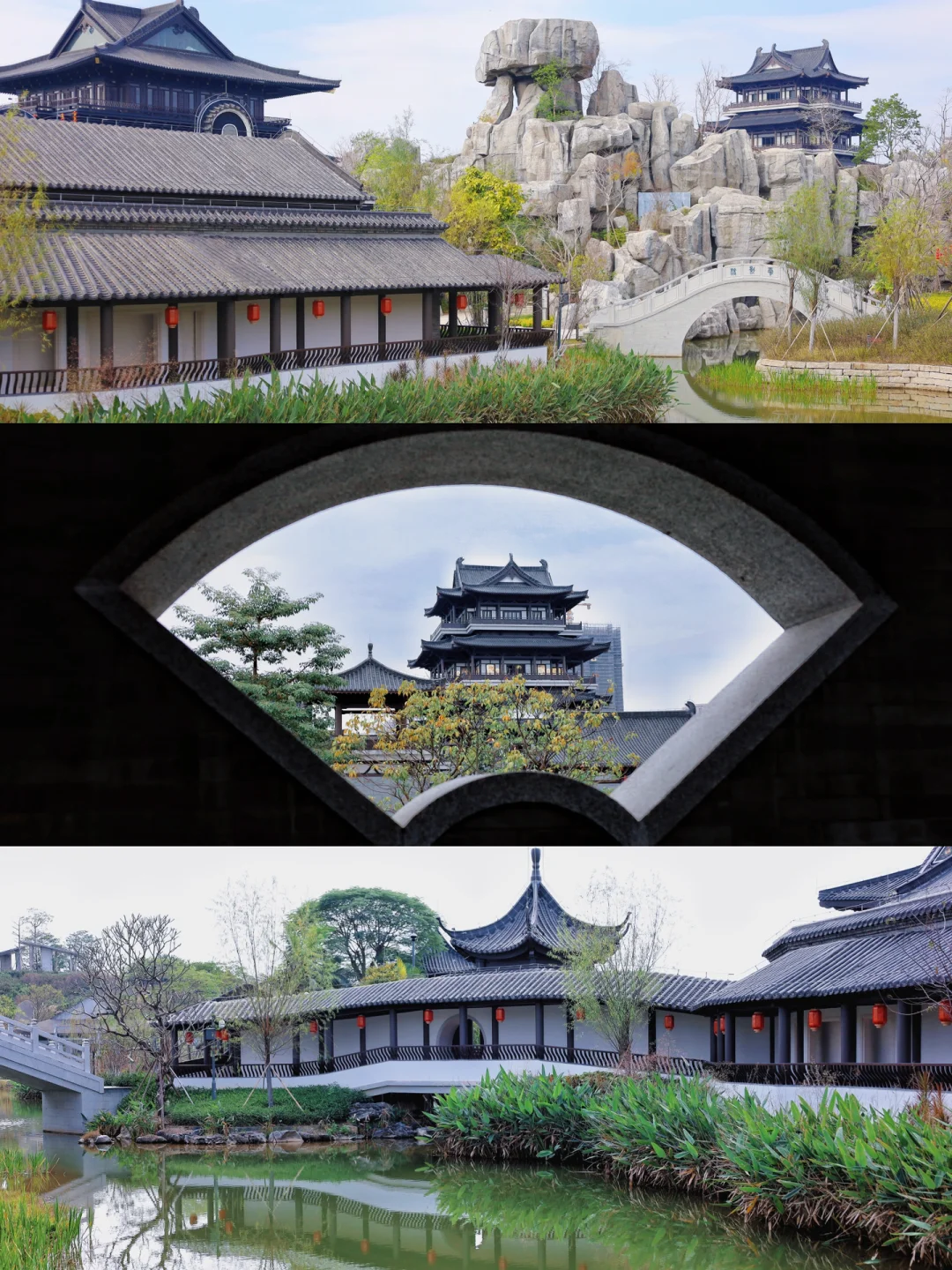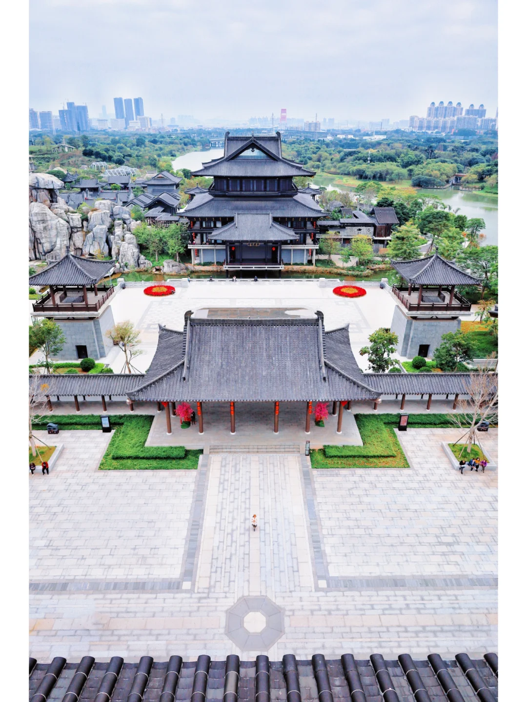 ✔️以“十里红云一湾水,八桥画舫十六亭”为建设规划理念,用传统建筑和园林空间的组合,建设成为一个风格鲜明的岭南园林式的文化,包含公共文化中心、文艺中心、广绣风雅园、岭南翰墨园、客家风韵园、曲水观景园等多个岭南特色园区