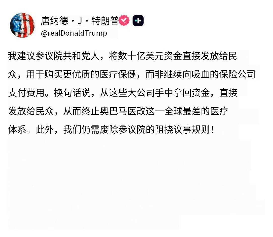 特朗普总统敦促参议院共和党人改革“奥巴马医改”的补贴政策,将数千亿美元资金直接发放给美国家庭,而非保险公司。