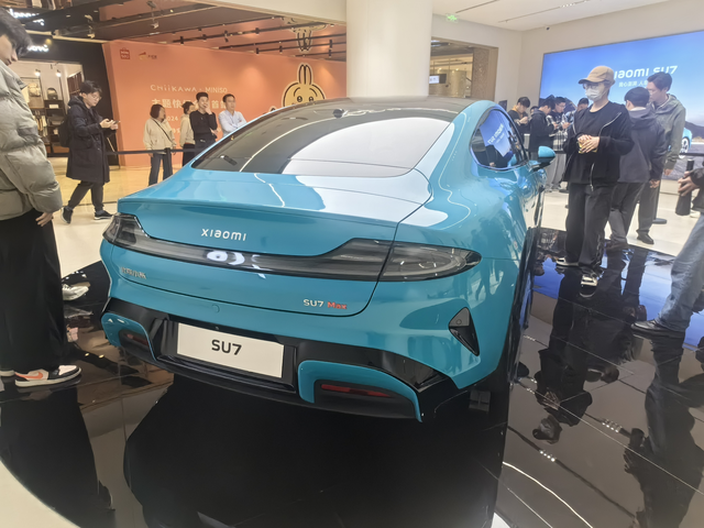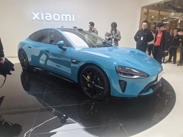 小米SU7今天到上海啦! 今天上海静安大悦城的小米之家有两台SU7到店。 一台是顶配,一台是低配。 说说主要肉眼可见的配置差别吧。 顶配比低配多了空悬,激光雷达,Brembo卡钳,21英寸的多辐亮黑轮毂和pzero运动胎,大到夸张的HUD。 目前看下来我猜顶配车应该会在35上下,顶配可能在26左右。如果是这个价格,我觉得不算特别能打