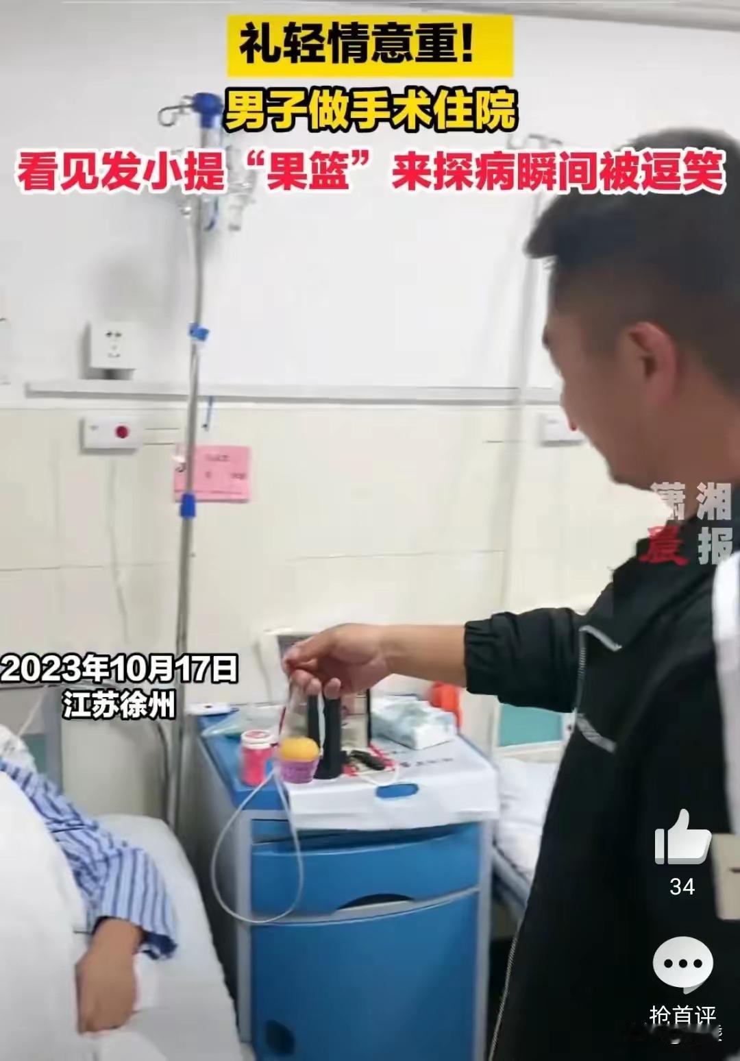 男子手术住院,光屁股长大的发小提着果篮前来探望,男子看到果篮,差点没背过气去。 原来发小提的果篮特别小,小到只能容纳一个砂糖橘,男子看到这一幕,笑的差点让手术缝线崩开。 男子的老婆连忙掏出手机,记录下这个搞笑的瞬间。 有网友说:礼薄情义重,他能来看你就说明他还记得你,当然,那小礼品也许就是来逗你乐的! 这才是真正的发小,东西不在多,在于永远记住,让你开心最重要,相信你会永远记住这美的时光!太有才了! 这个果篮虽然很小,但它承载了多少不为人知的秘密,或许这里面的秘密只有你二人知道吧,这就是真正的发小朋友 这么铁的关系根本不在乎啥礼物,人过来陪着唠唠嗑病就好了一半。 大家怎么看呢?