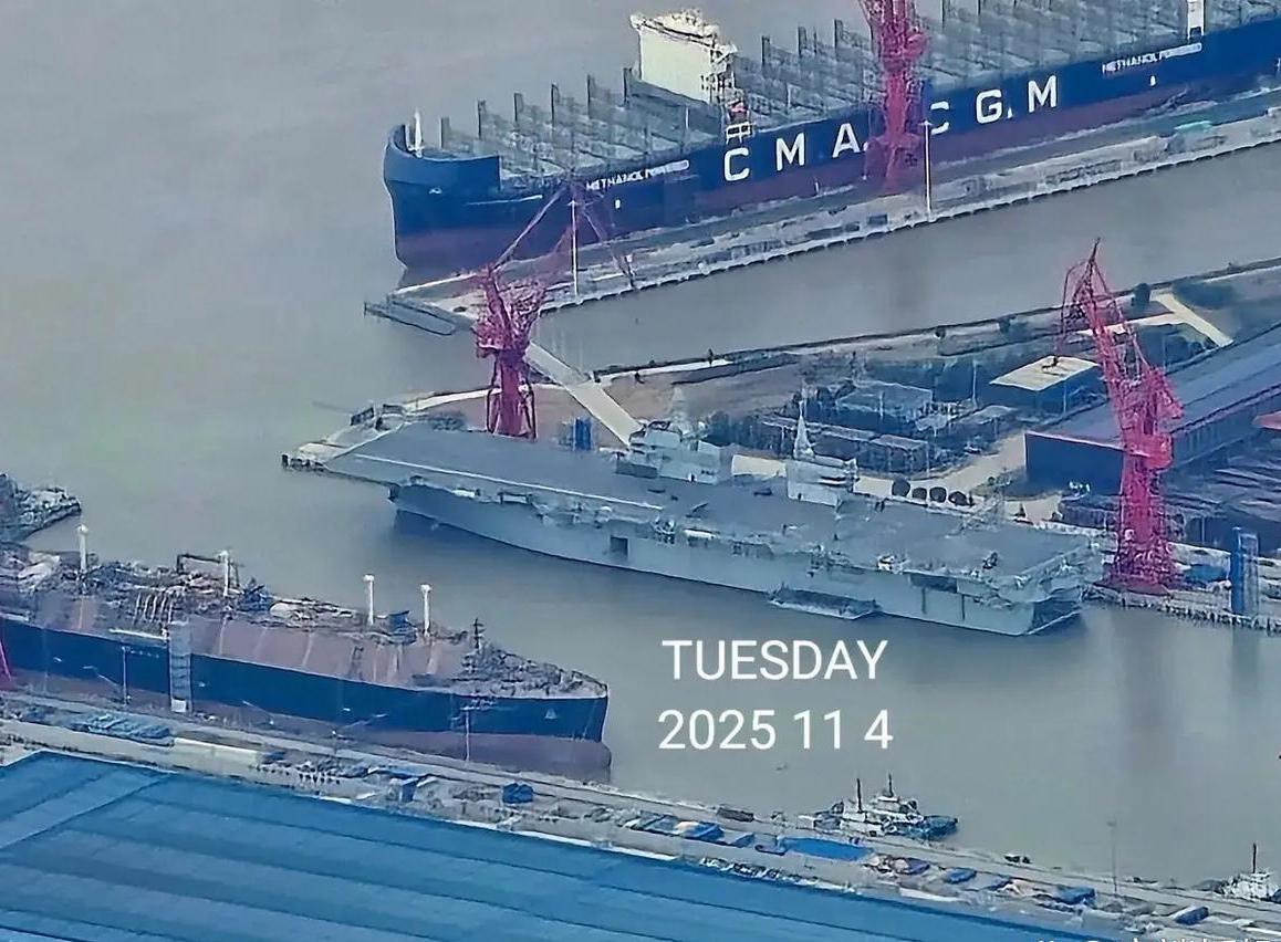 076型首舰的甲板干净整洁,这是要出海试航了吗!看到了舰体舯部竖起的挡焰板,虽然没看到舰艉降落区的拦阻装置,但拦阻索肯定会安装的,因为“攻击”系列的无人机,“攻击”11、“攻击”21无人机都采用了非加力型号的“涡扇”发动机,机体后部也都有着舰的尾钩。目前来看,076两攻就是起降无人机的“航母”,有人驾驶的歼35暂时不会被考虑在内。 从目前076型的图片来看,电磁弹射器整体偏于舰体甲板的左侧,弹射无人机时机翼可能会向外伸出一大截,那么这型无人机很大可能就是“攻击”21无人机。该款无人机,采用的是非加力型号的“涡扇”13/13E发动机, 而“攻击”11隐身无人机,也将成为076型的另外一位“常客”,“攻击”11采用无尾飞翼布局,雷达反射截面积低至0.001平方米,敌方的雷达“极度”的隐身。最新的图片显示,这款无人机已经加装了着舰尾钩,舰载化进程很明显。另外,“攻击”11无人机,未来也将配备非加力型号“涡扇”19发动机。 所以说,076型两栖攻击舰有了电磁弹射器、挡焰板,怎么可能没有拦阻索呢!“攻击”11/21无人机,不是一次性的“自杀”式无人机,必须做到“有去有回”。