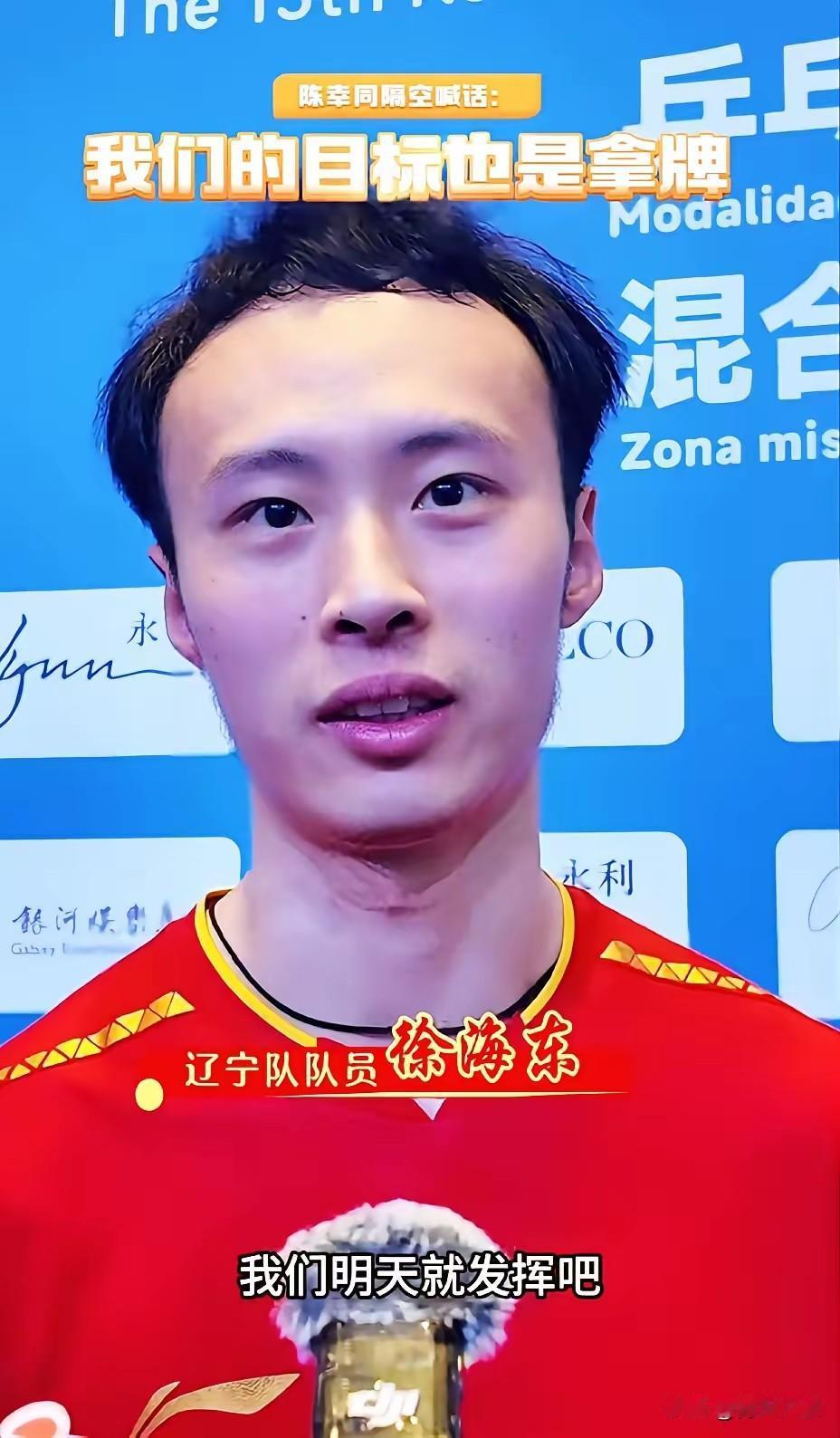 全运会记者问题刁钻,陈幸同高情商化解! 记者问:下一场将面对黄廷伟/杜姐组合,你们该如何面对? 陈幸同眼睛一瞪说: 我们就是来拿金牌的, 他们来抢, 和他们拼了! 徐海东憨憨的说: 我们明天就发挥吧! 香港队混双和男双都很强, 这次相当于混双决战了。
